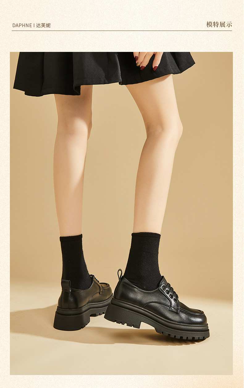 Daphne thick-soled loafers women's shoes 2025 spring new white high-heeled lace-up British style versatile small leather shoes