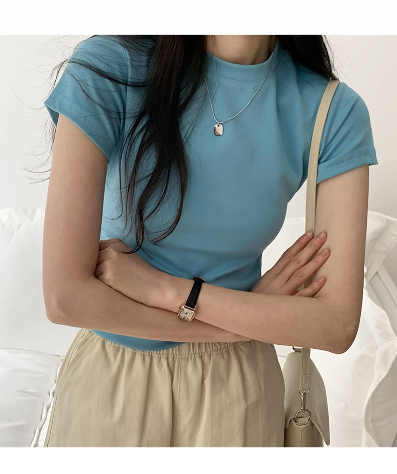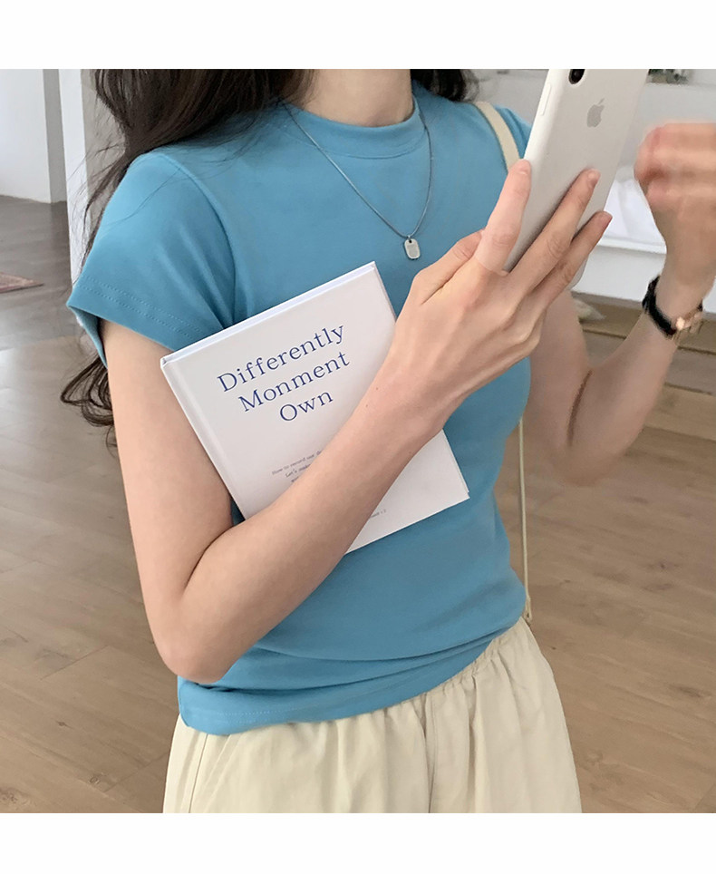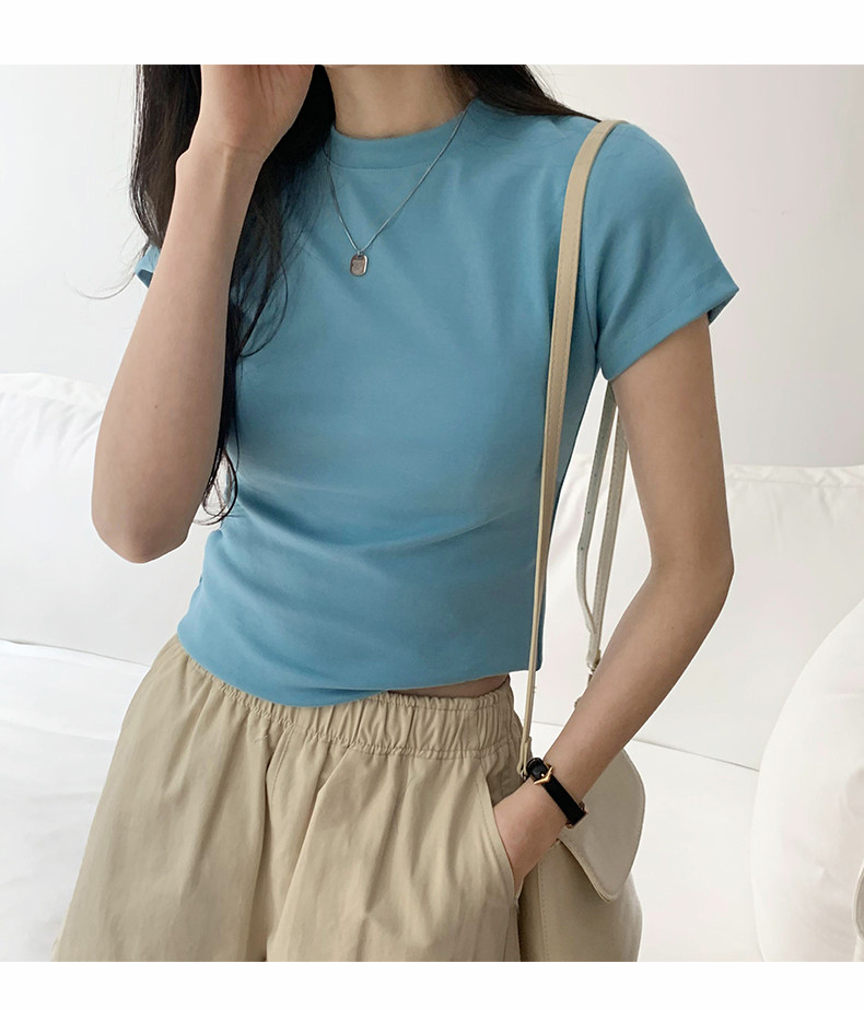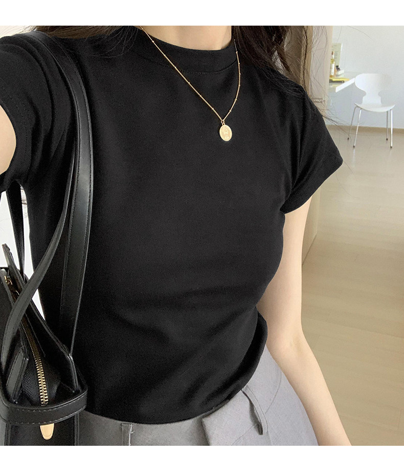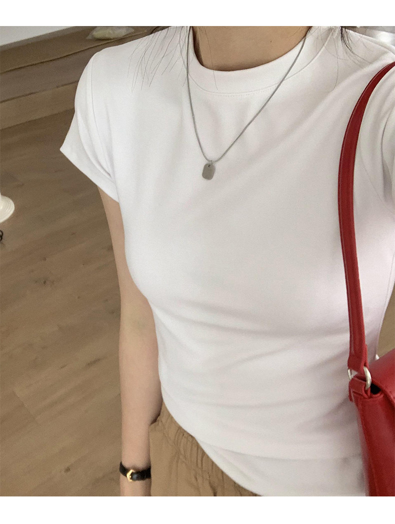 Temperament slim, soft and simple solid color round neck short sleeve 2025 summer wear ins style pure cotton inner T-shirt women's bottoming shirt