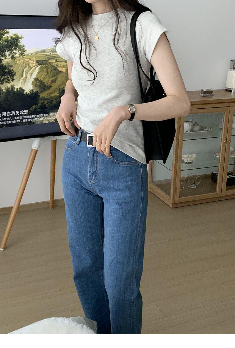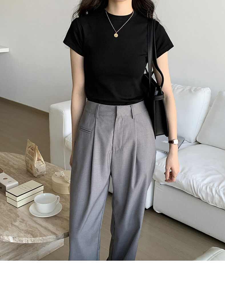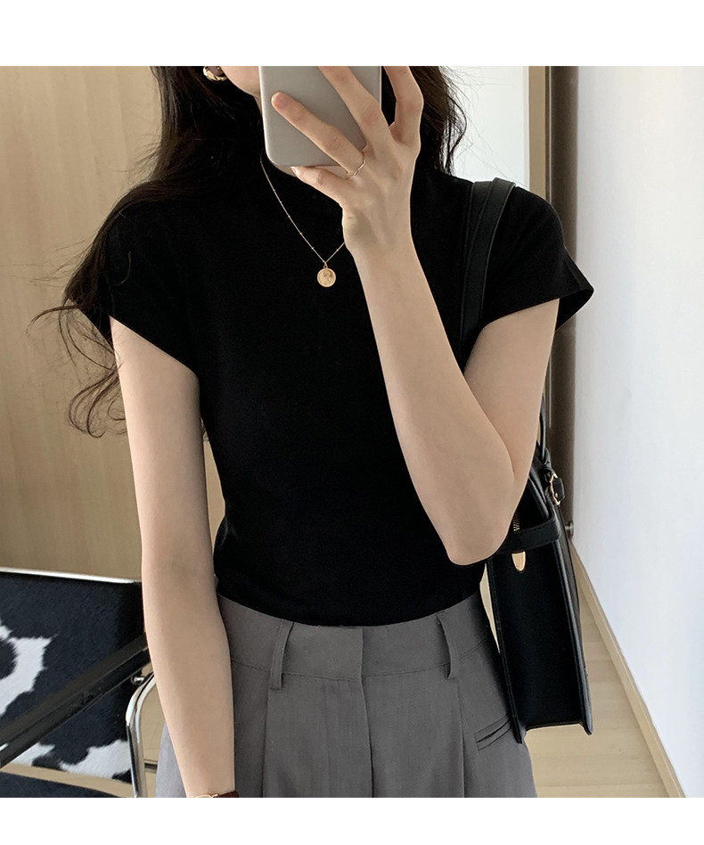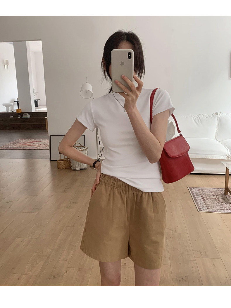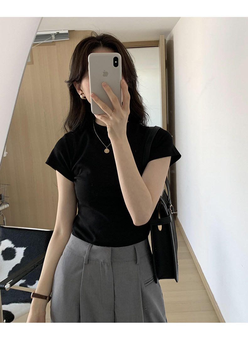 Temperament slim, soft and simple solid color round neck short sleeve 2025 summer wear ins style pure cotton inner T-shirt women's bottoming shirt
