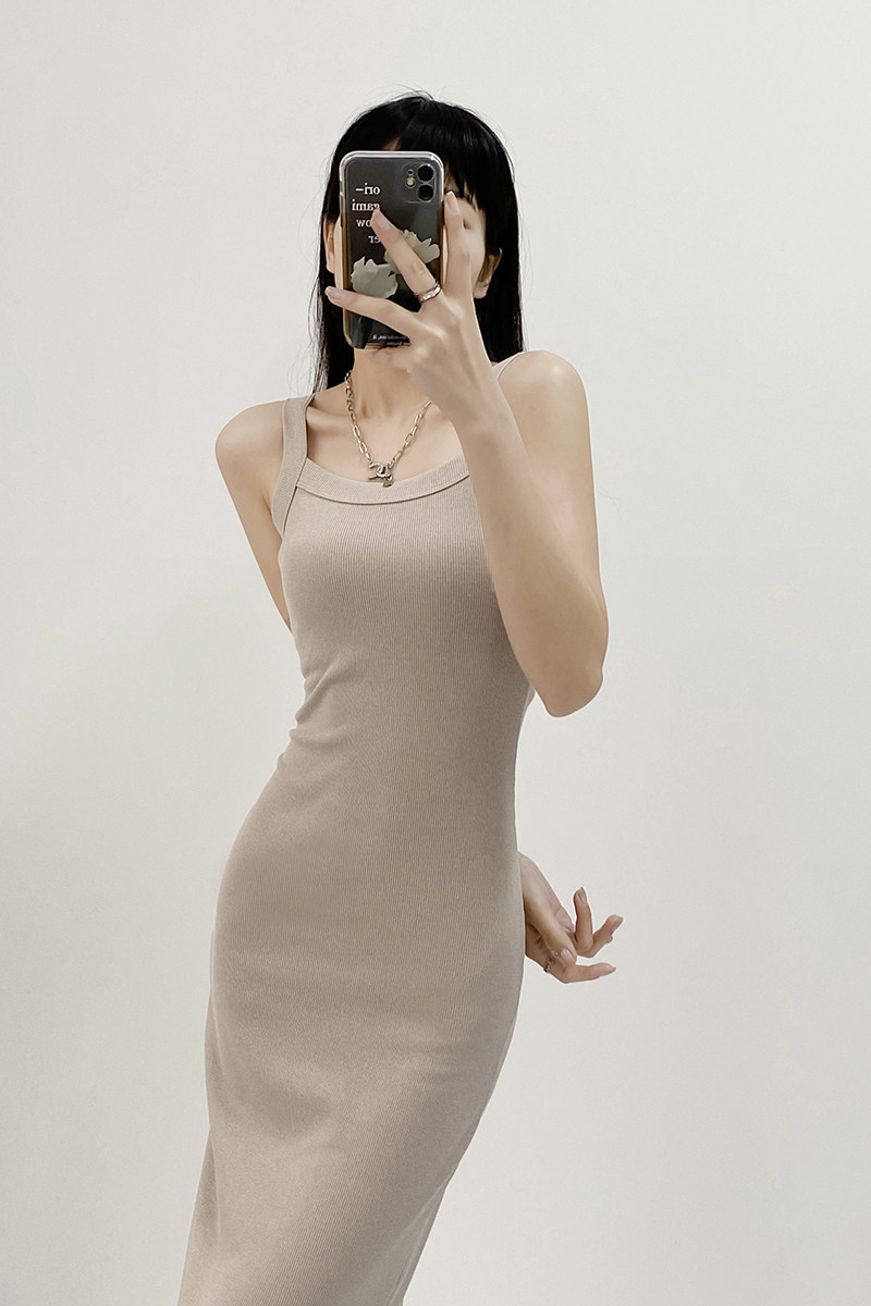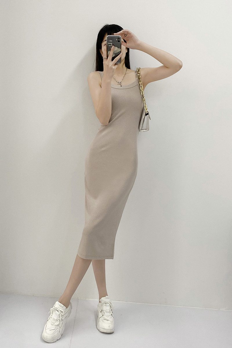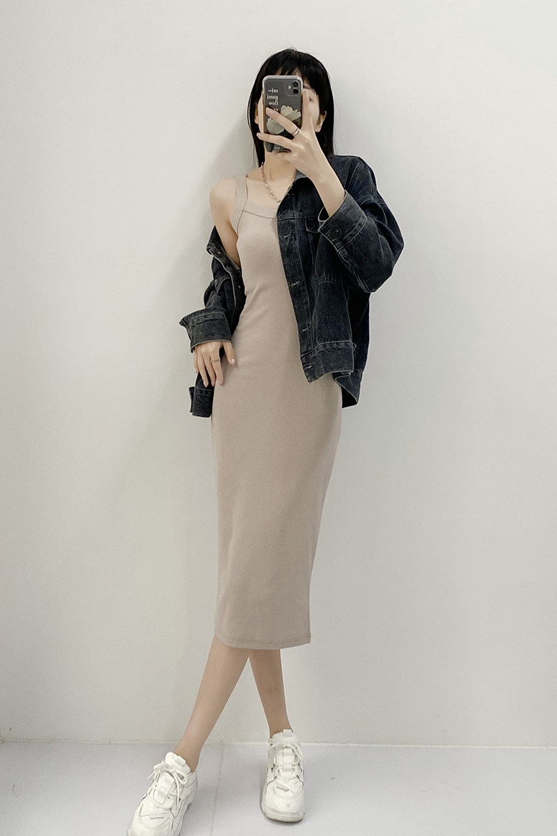 Anti-exposure bottoming cotton suspender dress sundress for women spring and summer Korean style high-end slim hip-covering long skirt