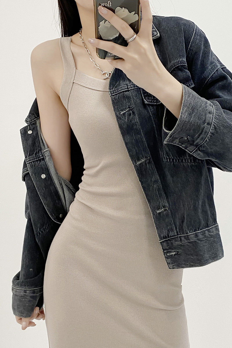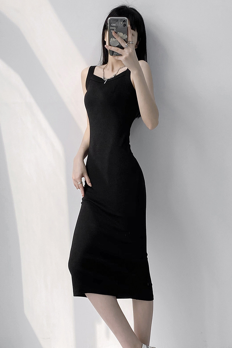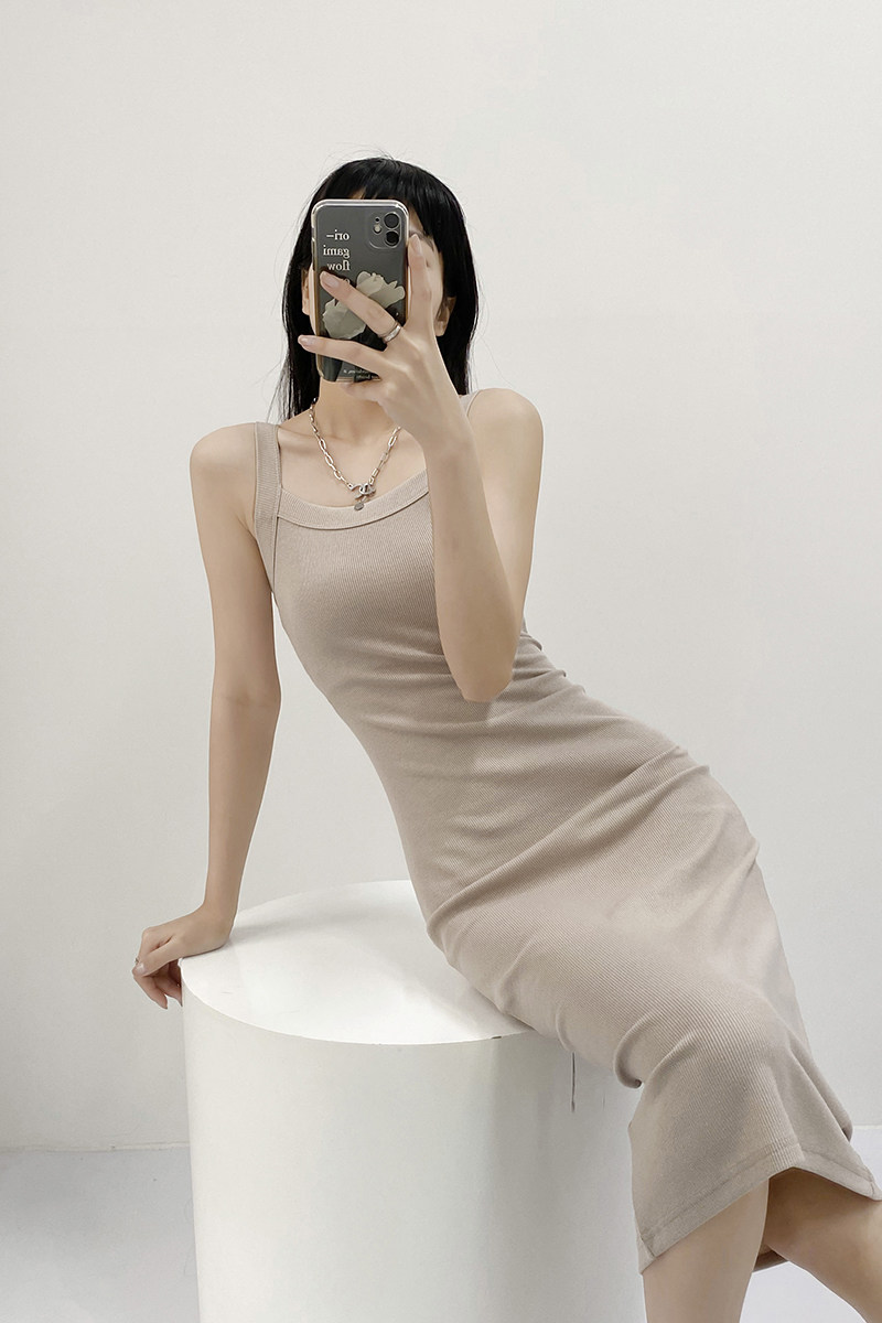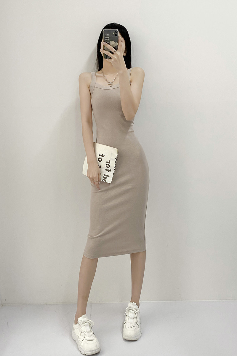 Anti-exposure bottoming cotton suspender dress sundress for women spring and summer Korean style high-end slim hip-covering long skirt