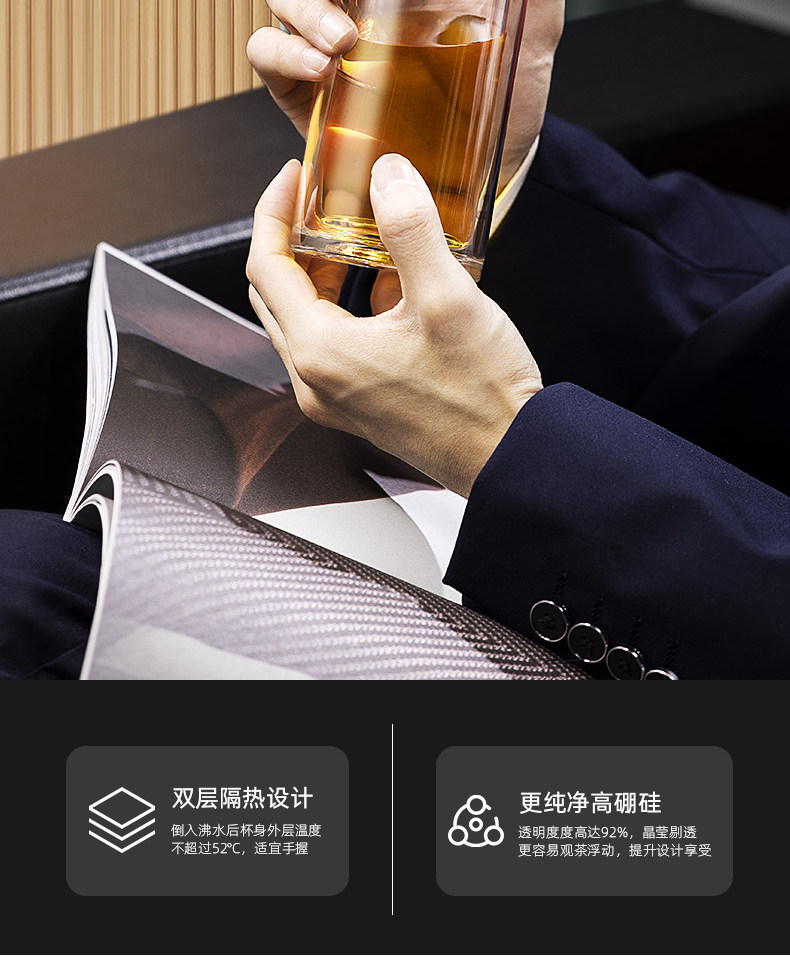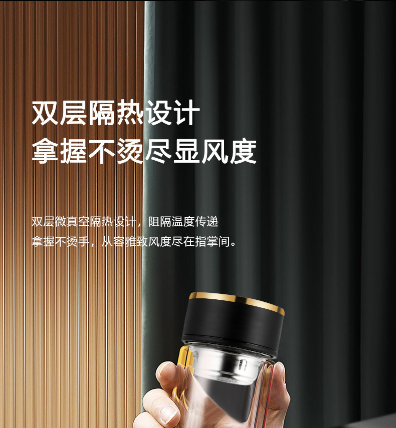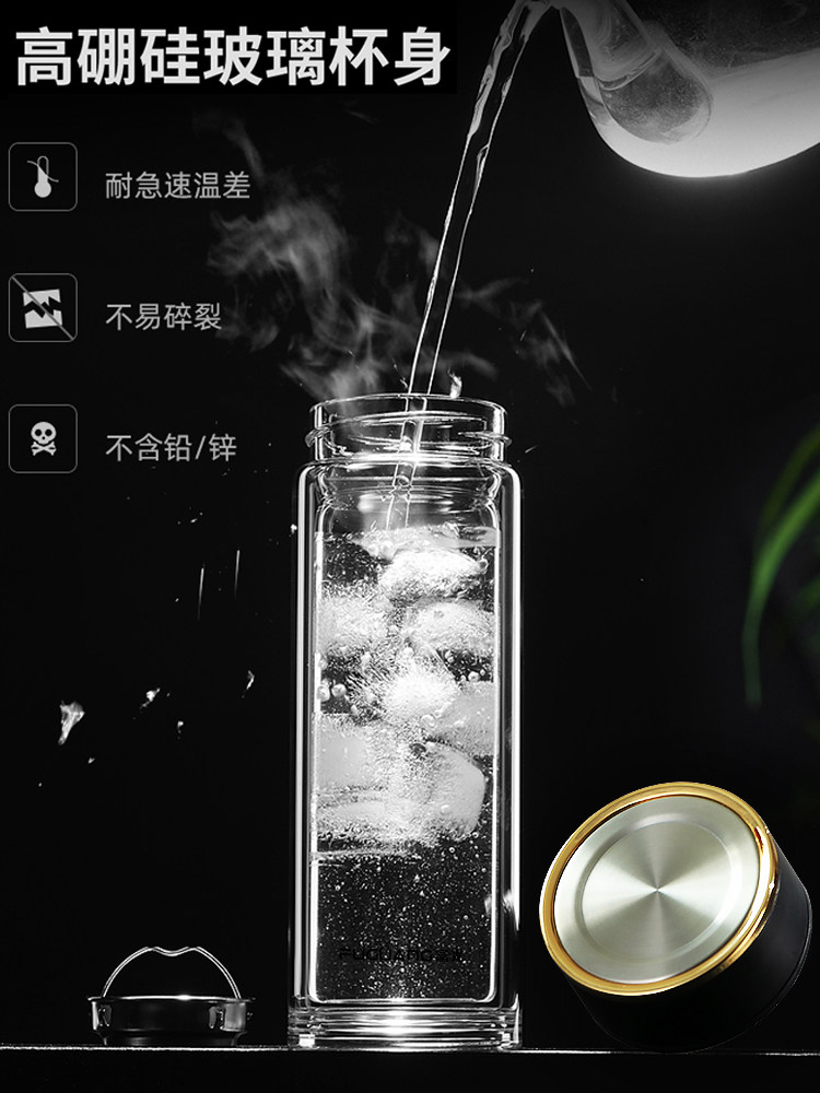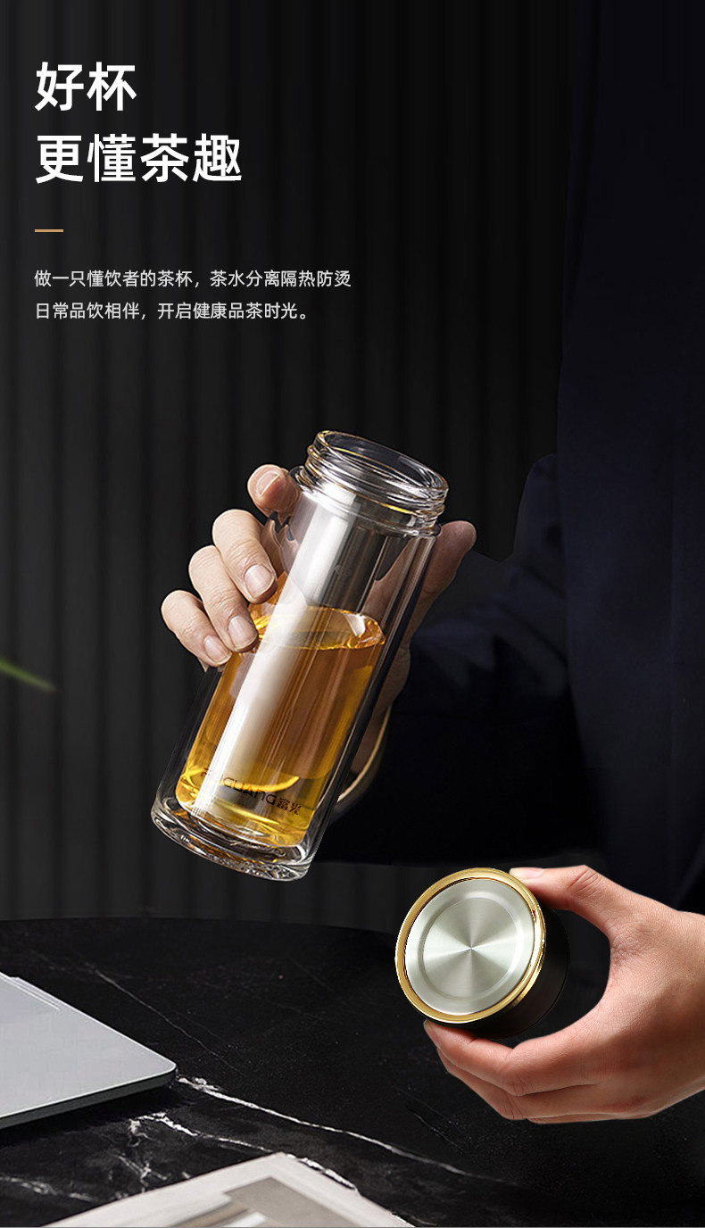 Fuguang Double-Layer Glass Cup for Men and Women, Tea and Water Separation, High Borosilicate Heat-Resistant, Explosion-Proof, High-Temperature Resistant Water Cup
