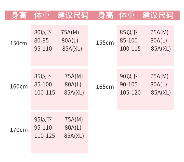China (cm) 160-165/84-86 165-170 / 88-90 167-172 / 92-96 168-173 / 98-102 170-176 / 106-110