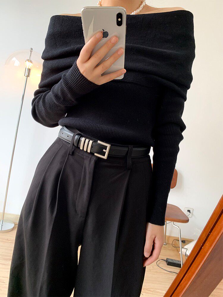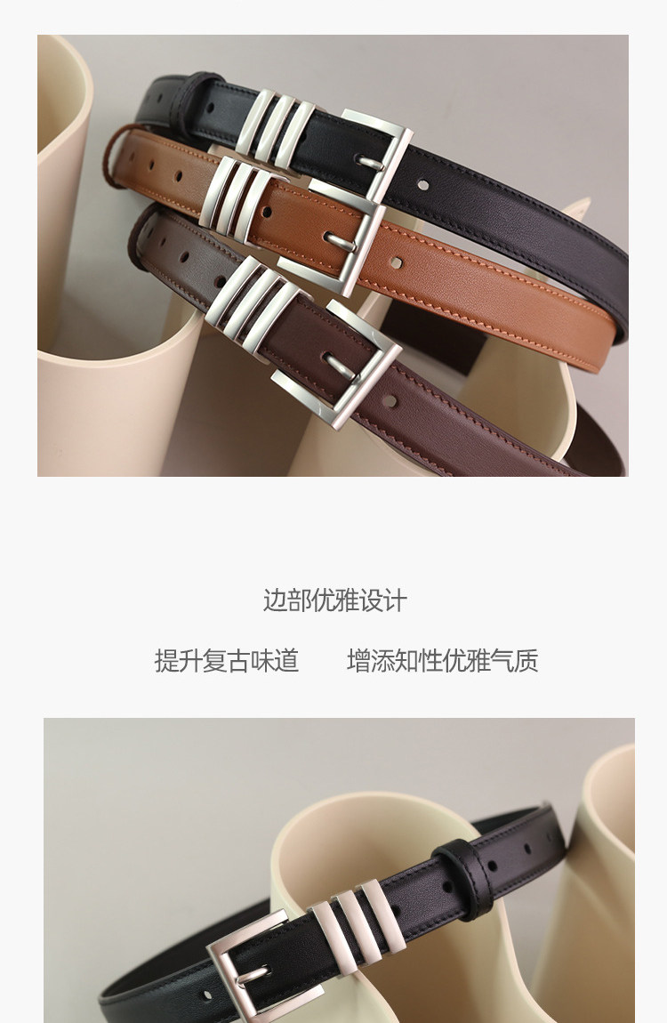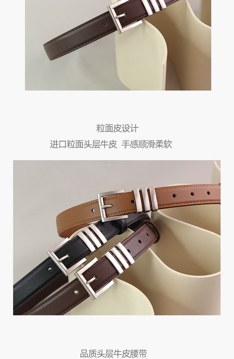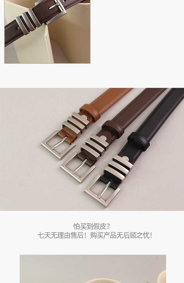 Design-Conscious Niche Women's Belt, Genuine Leather, Versatile Black Silver Buckle, Suitable for Jeans, High-End First-Layer Cowhide