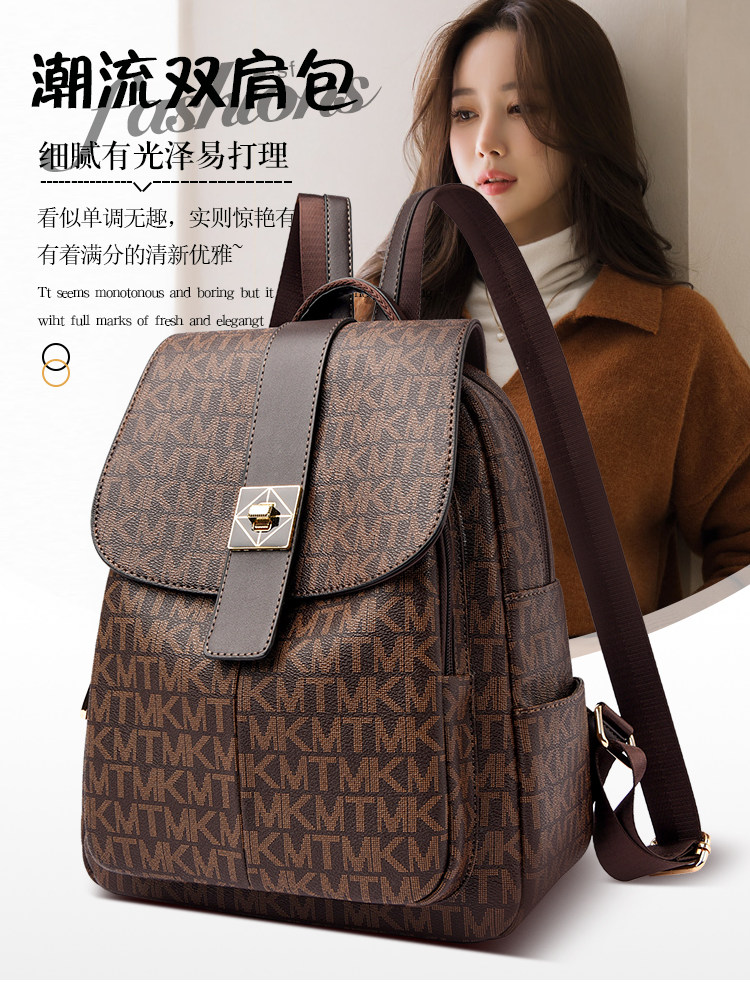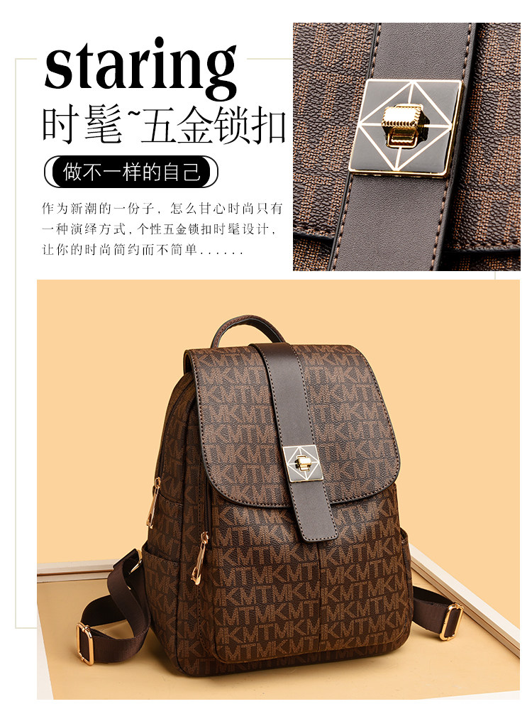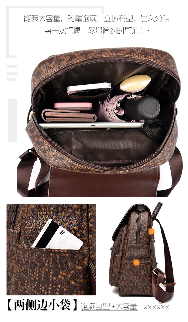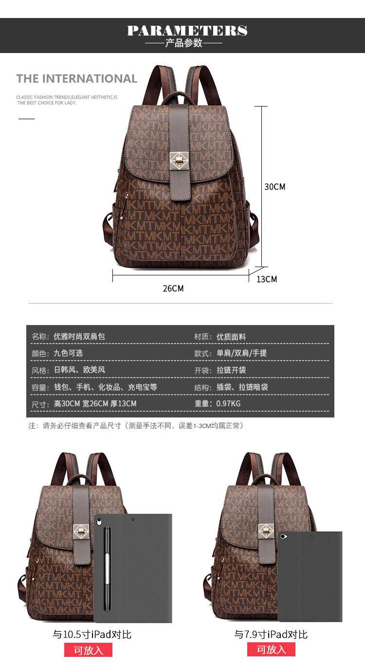 香港I.Tgreg韩版女士真皮双肩包经典印花背包休闲大容量旅行包潮