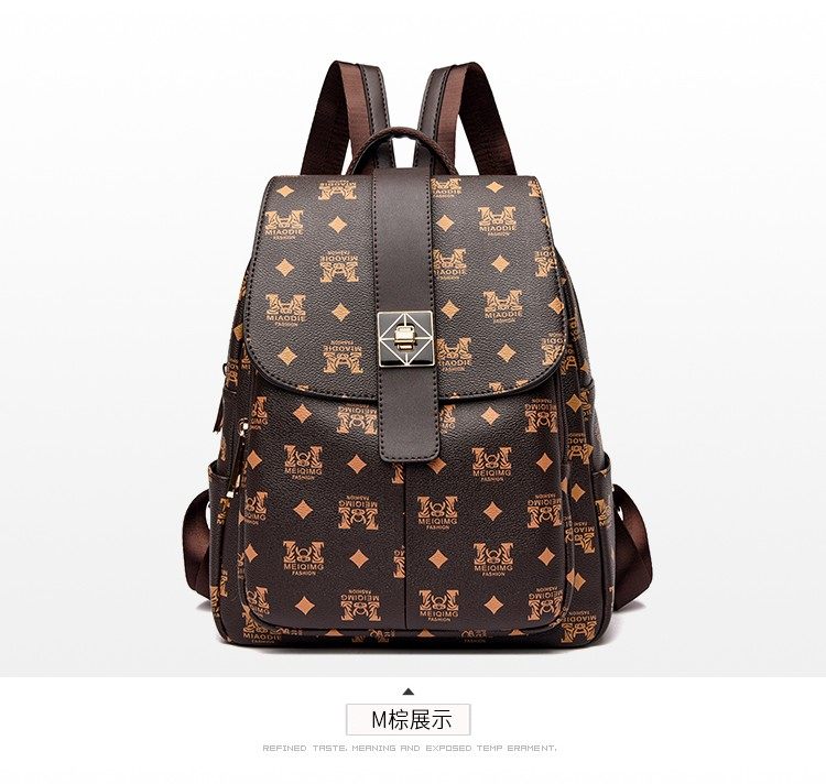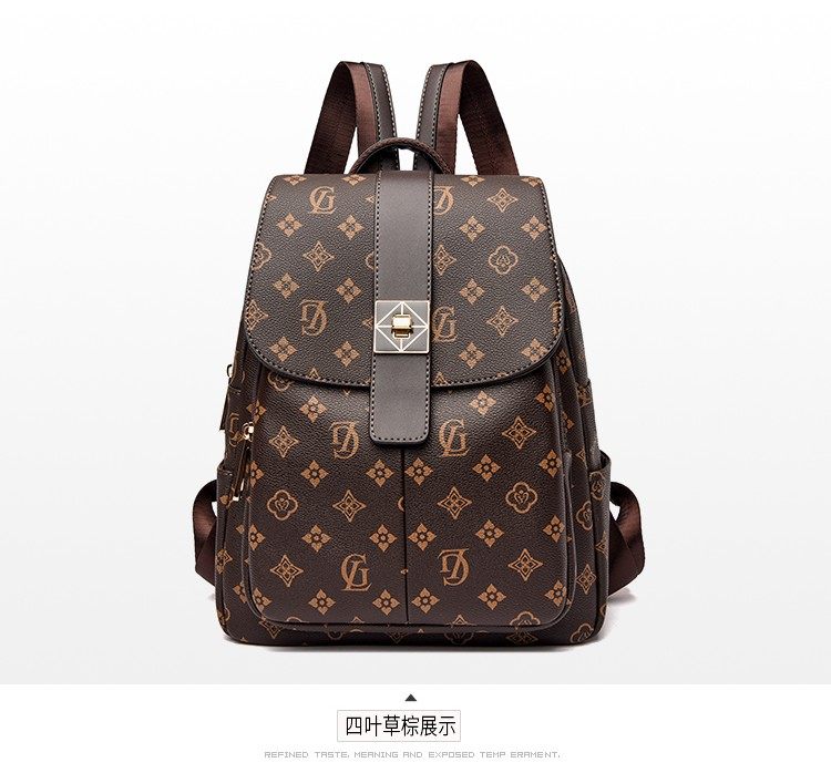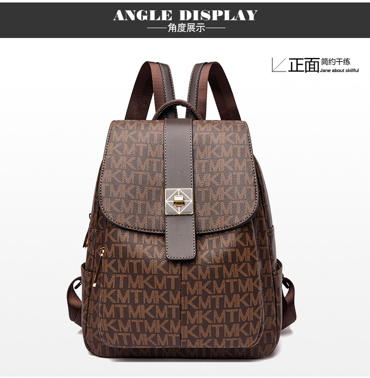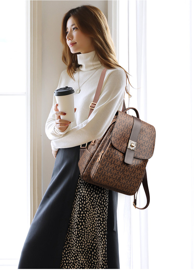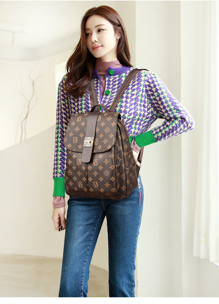 香港I.Tgreg韩版女士真皮双肩包经典印花背包休闲大容量旅行包潮