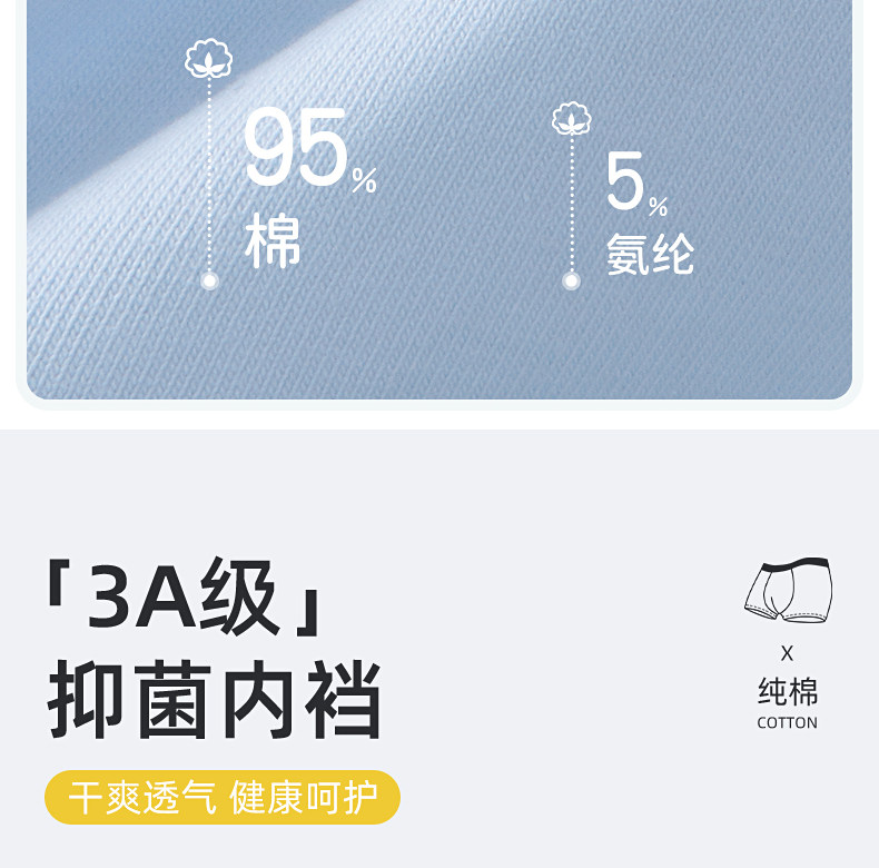 Crotch material composition Cotton 95% polyurethane elastic fiber (spandex) 5%