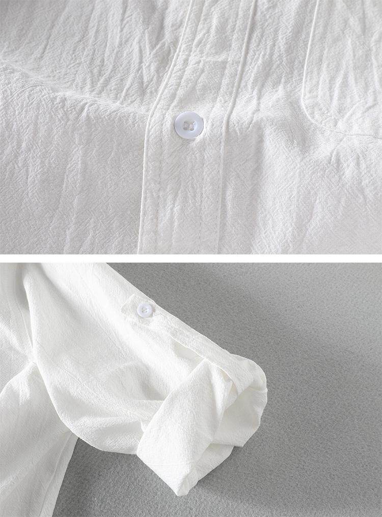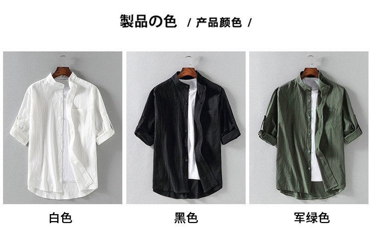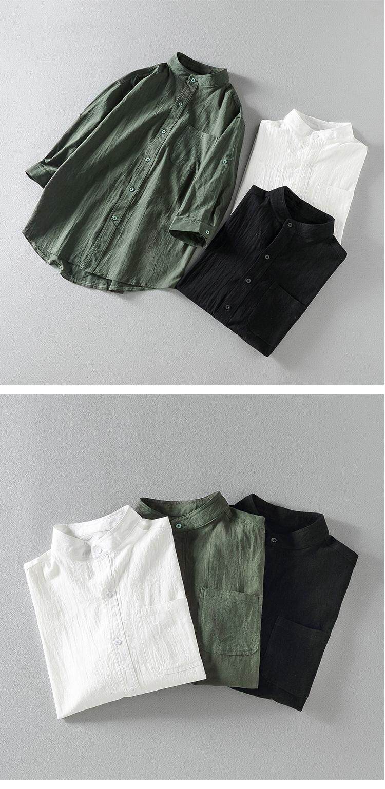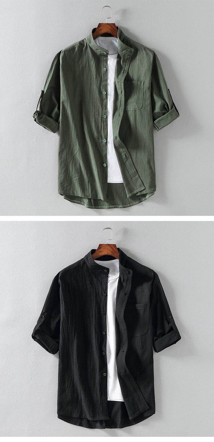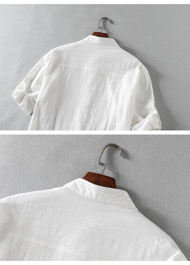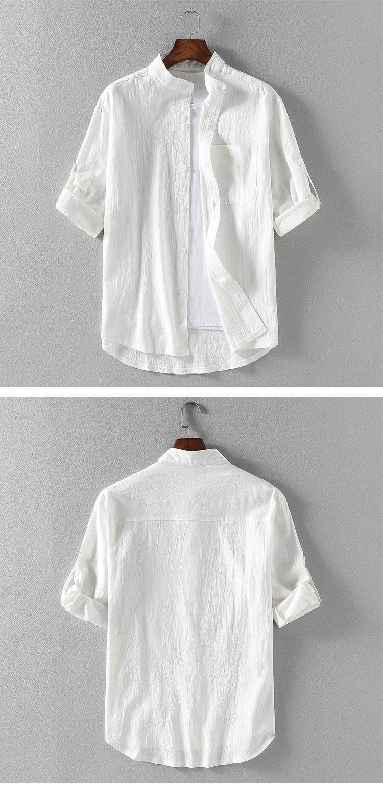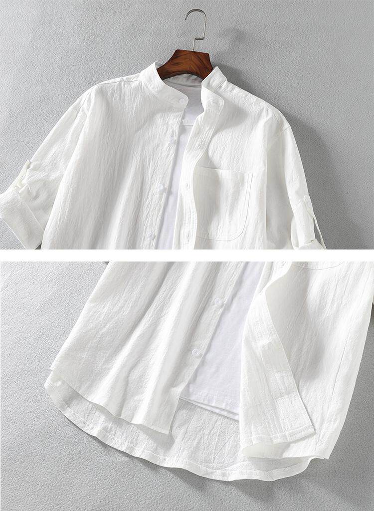 Men's Linen Short-Sleeve Shirt, Long-Sleeve 2023 Summer T-Shirt, Casual Loose Fit, Large Size, Stand Collar, Trendy Men's Clothing