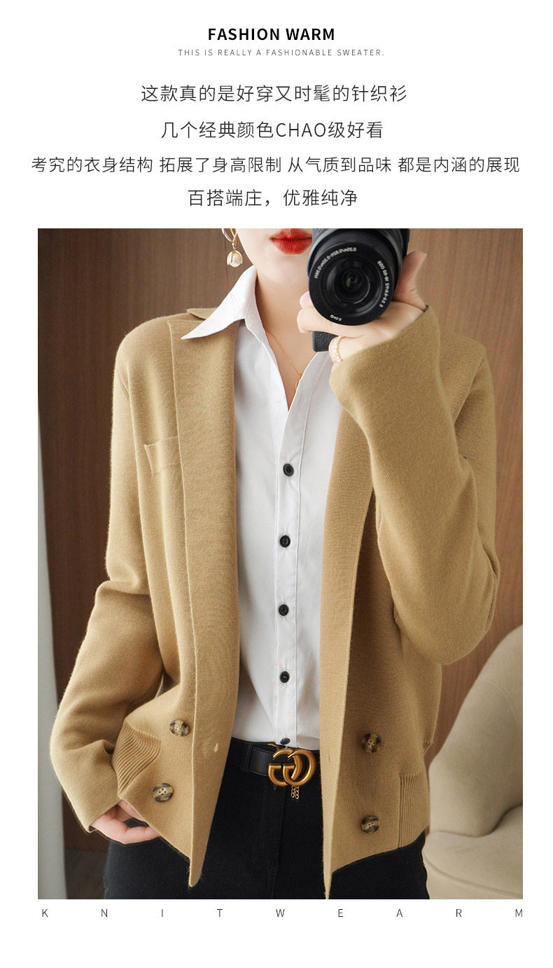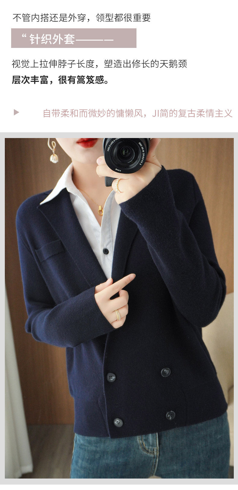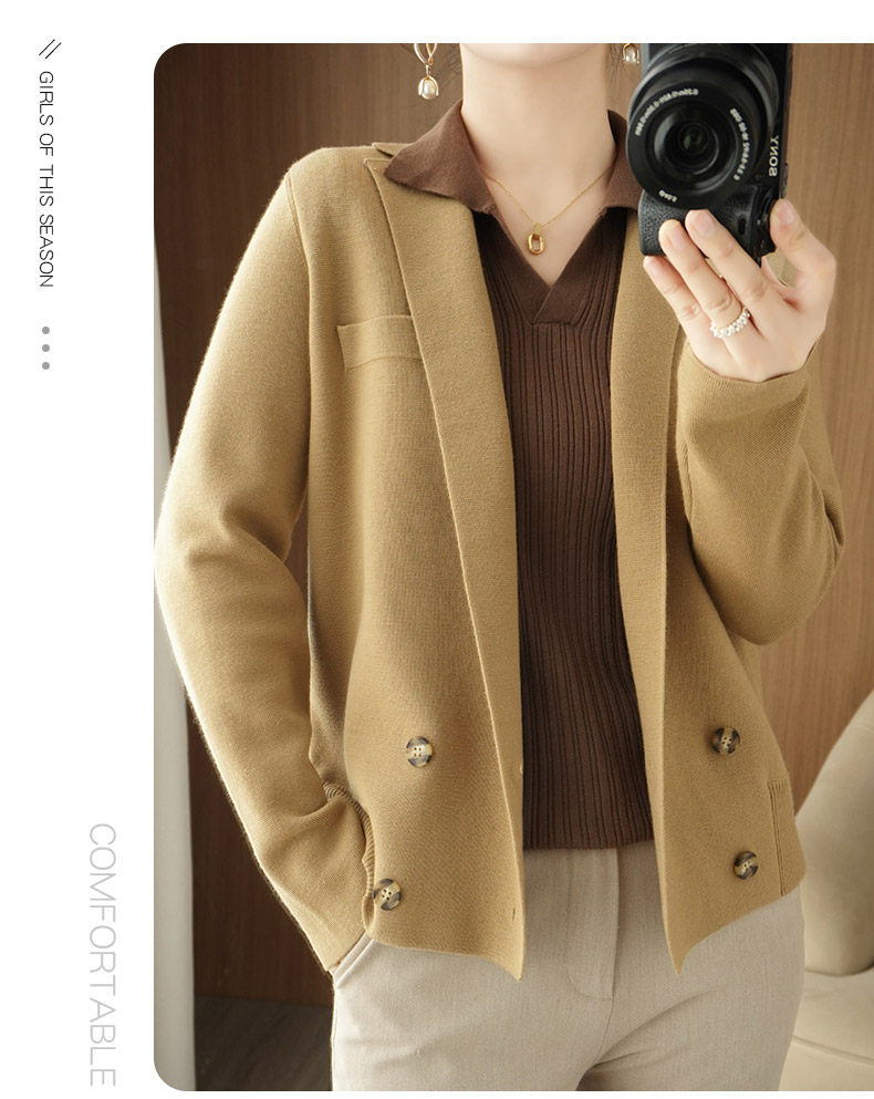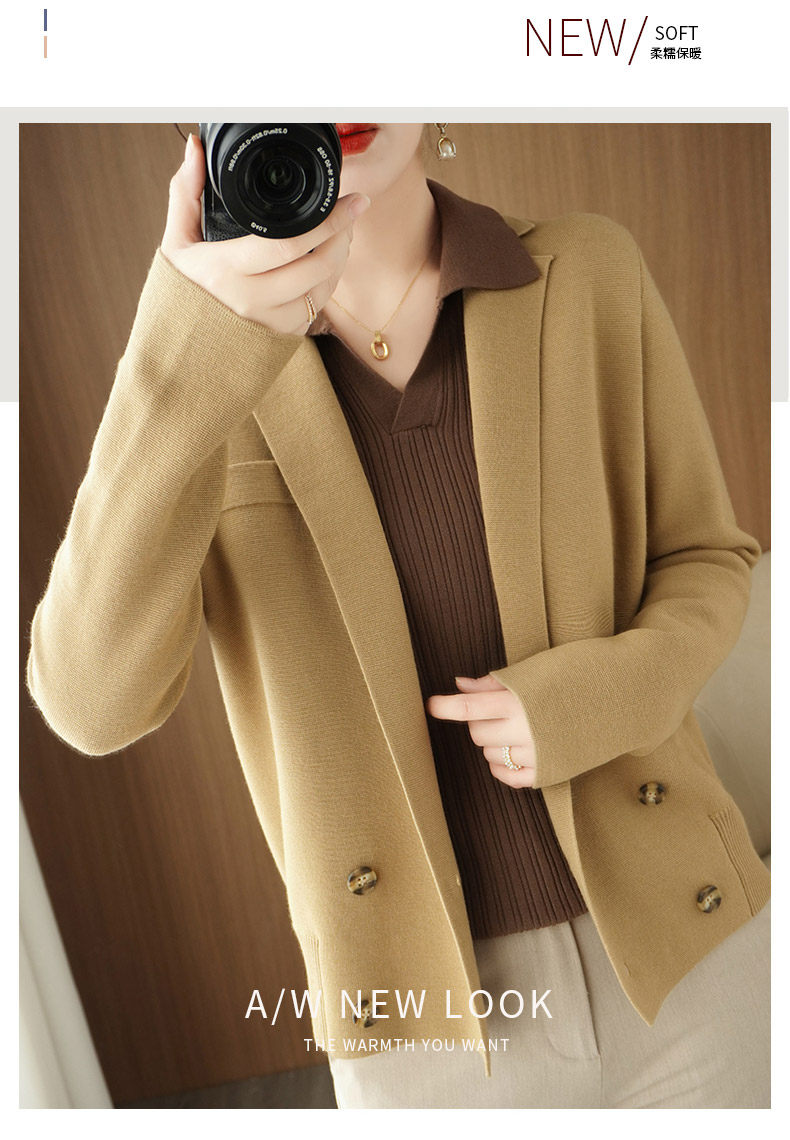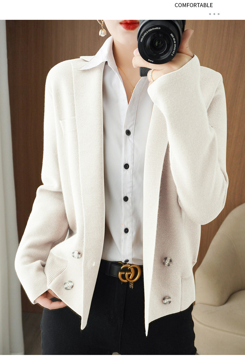 Suit Collar Knitted Cardigan for Women, Spring and Autumn Style, Elegant Outerwear Sweater Jacket, 2026 New Loose and Versatile Long-Sleeved Top