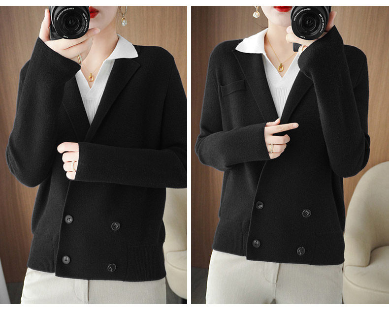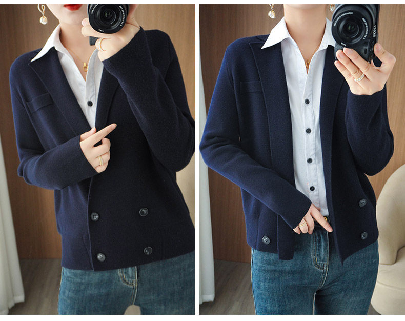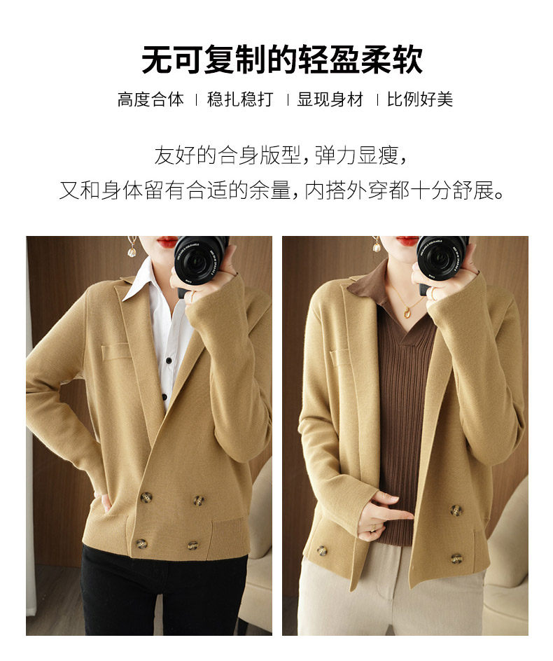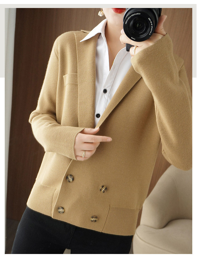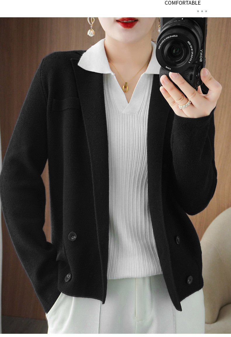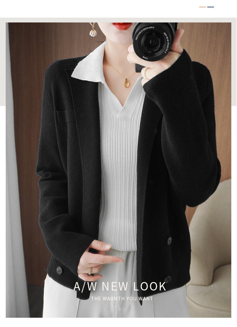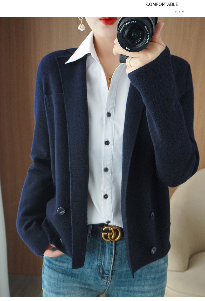 Suit Collar Knitted Cardigan for Women, Spring and Autumn Style, Elegant Outerwear Sweater Jacket, 2026 New Loose and Versatile Long-Sleeved Top