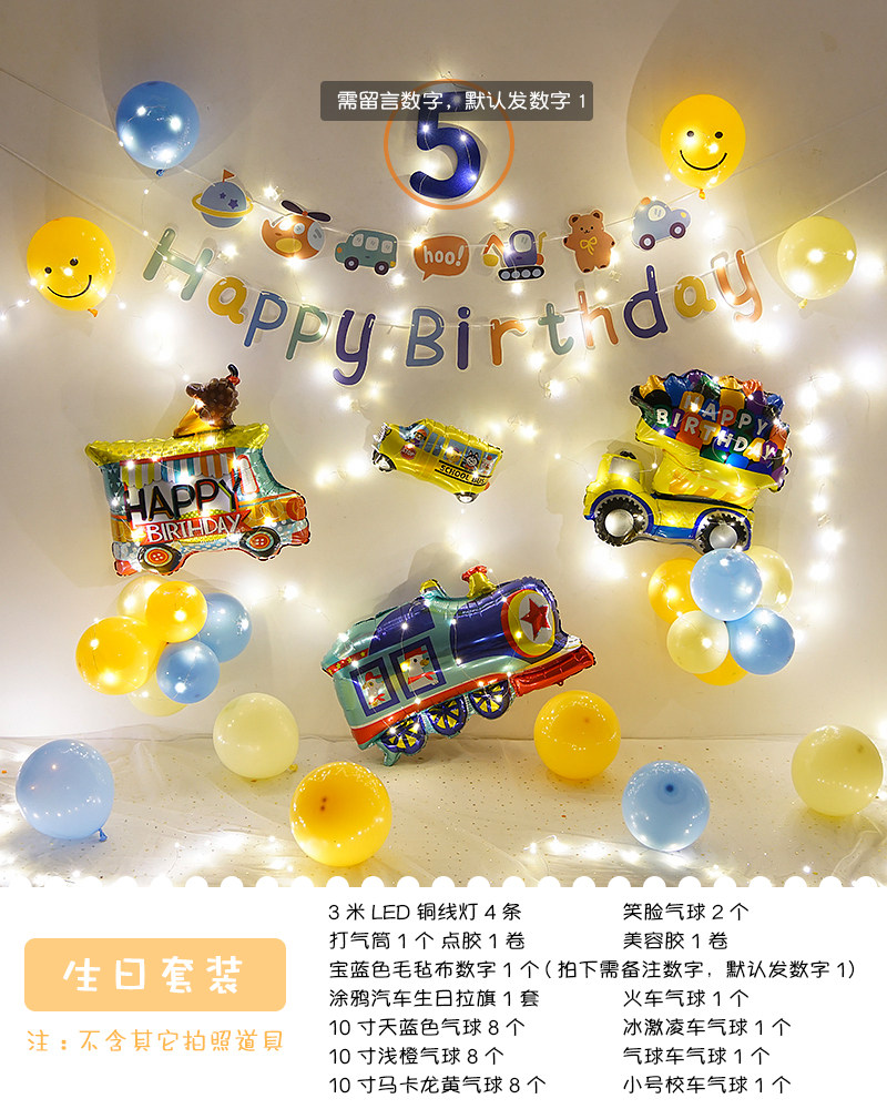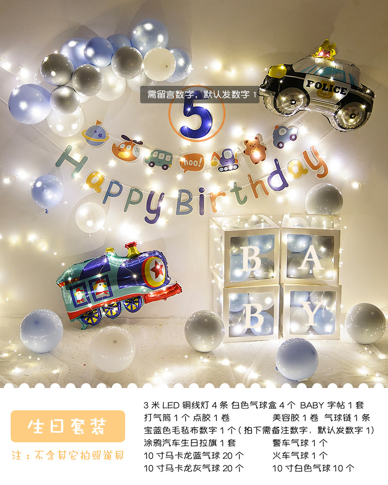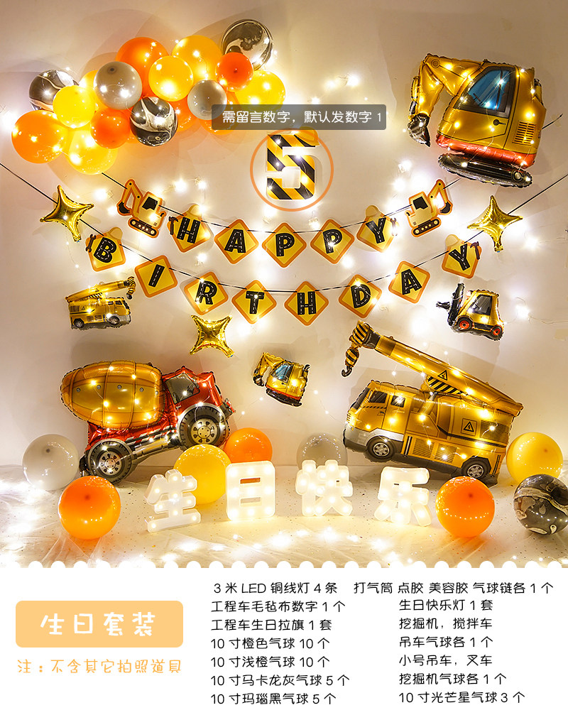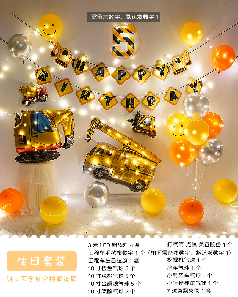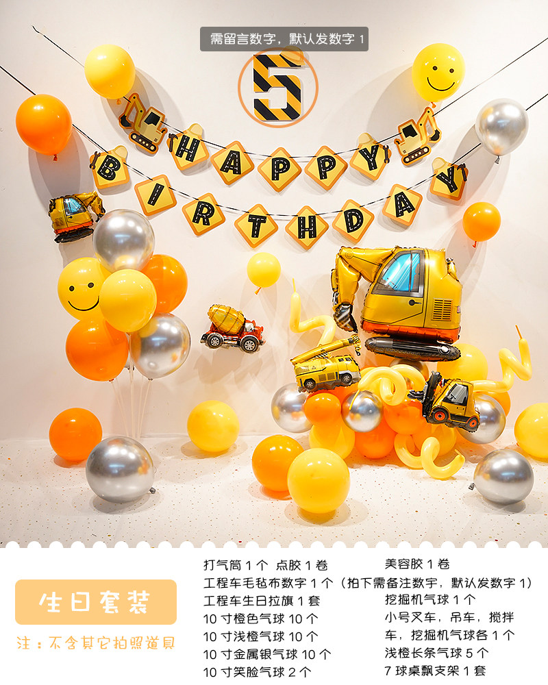 Baby birthday decoration balloon excavator car theme background wall boy children's first birthday party scene layout