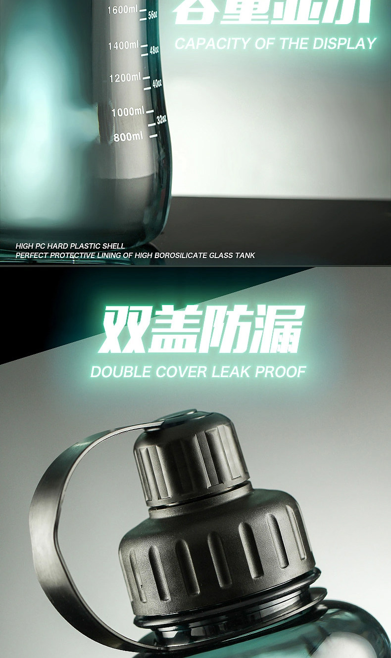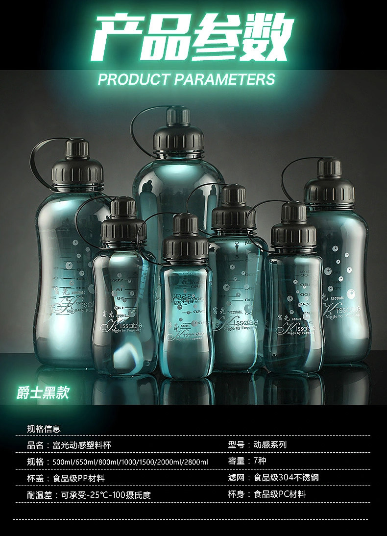 Fuguang Plastic Water Cup, Extra Large Capacity 2L Portable Water Bottle, Unisex Outdoor Sports Anti-Fall and High-Temperature Resistant Space Cup