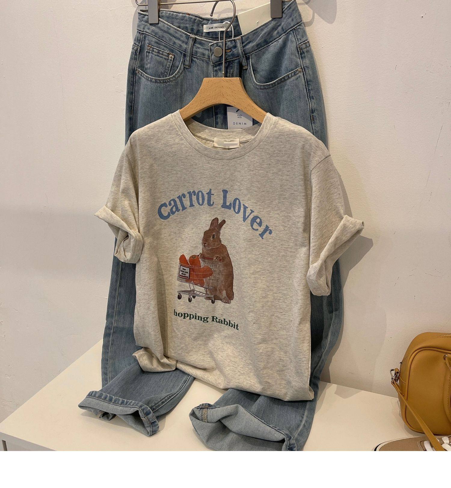 Hong Kong style age-reducing retro cartoon printed T-shirt women's tops 2025 summer personalized niche short-sleeved bottoming shirt