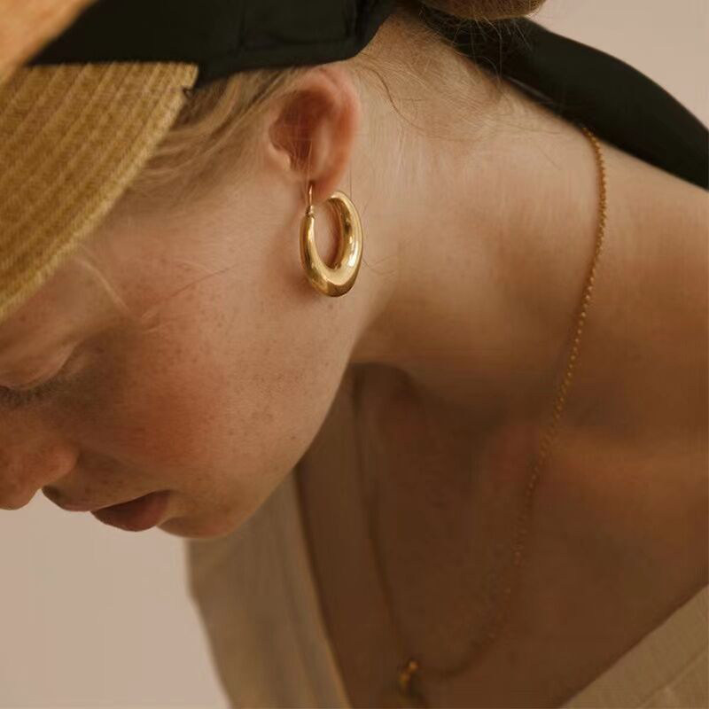 Must-Have European and American Style Brass Gold-Plated Oval Earrings, Ins Cool Hip-Hop Fashionable Personality Hollow Hoop Earrings