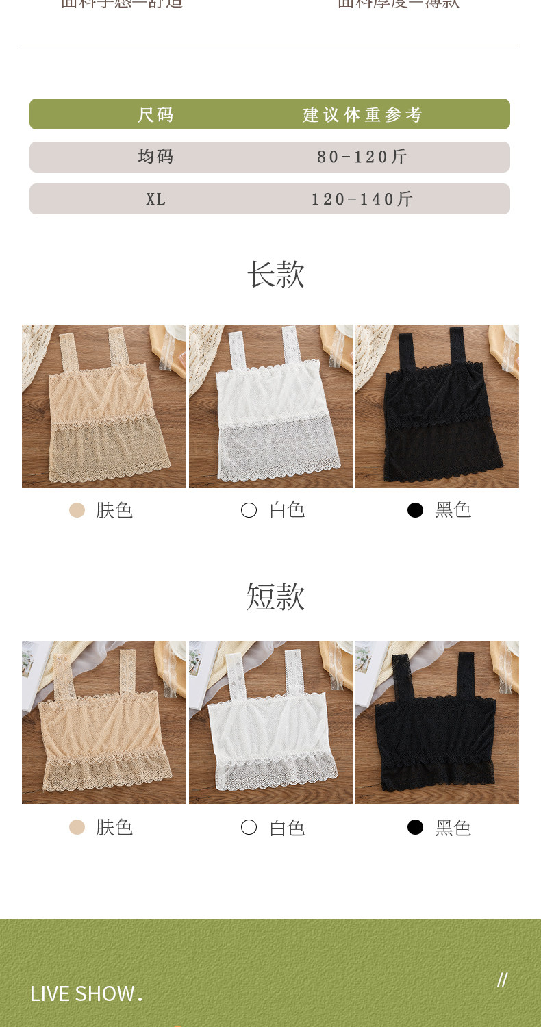 Lace camisole female sexy outer wear versatile chest-wrapped long bottoming shirt with slimming white top for women summer