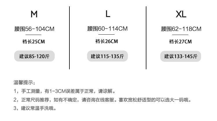 размер М (рекомендуется 42.5-60kg),L (рекомендуется 55-67.5kg),XL (рекомендуется 66.5-72.5kg)