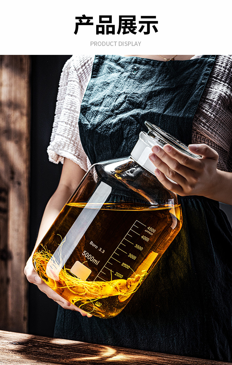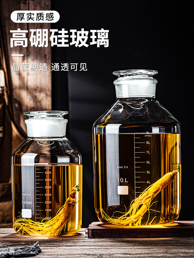 High borosilicate wine bottle, empty bottle, household glass sealed jar, ginseng wine making jar, high-end wine container