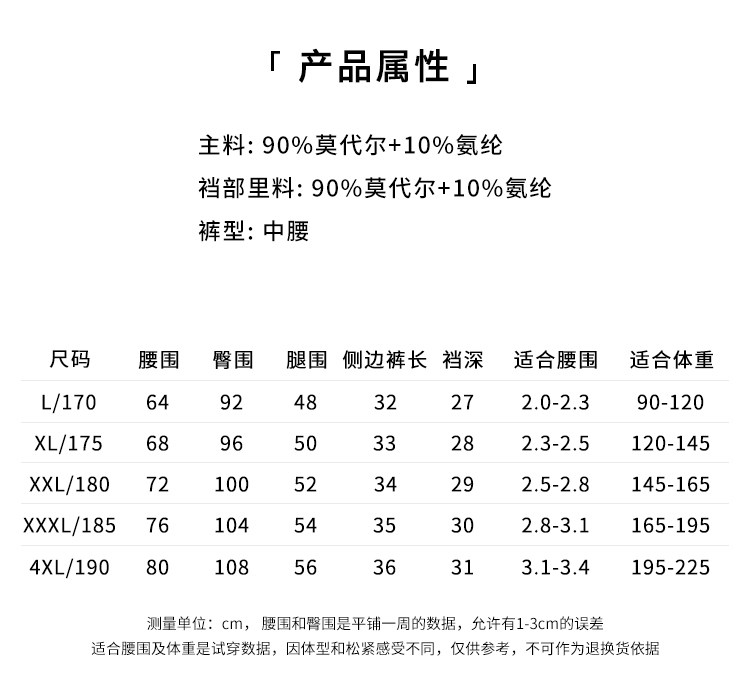 Crotch material composition Modal fiber (Modal) 90% Polyurethane elastic fiber (spandex) 10%