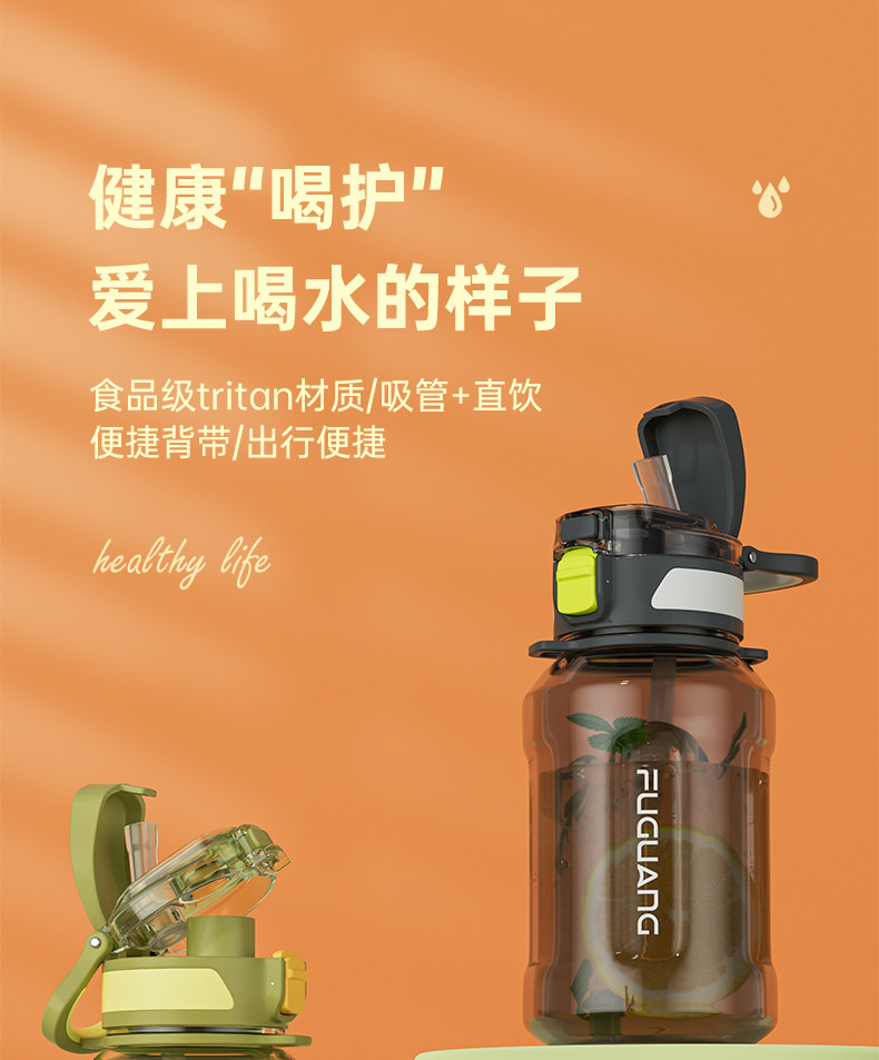 Fuguang Large-Capacity Water Cup, Special Straw Cup for Students Going to School, Men's and Women's Sports Fitness Space Cup, Anti-Fall and High Temperature Resistant