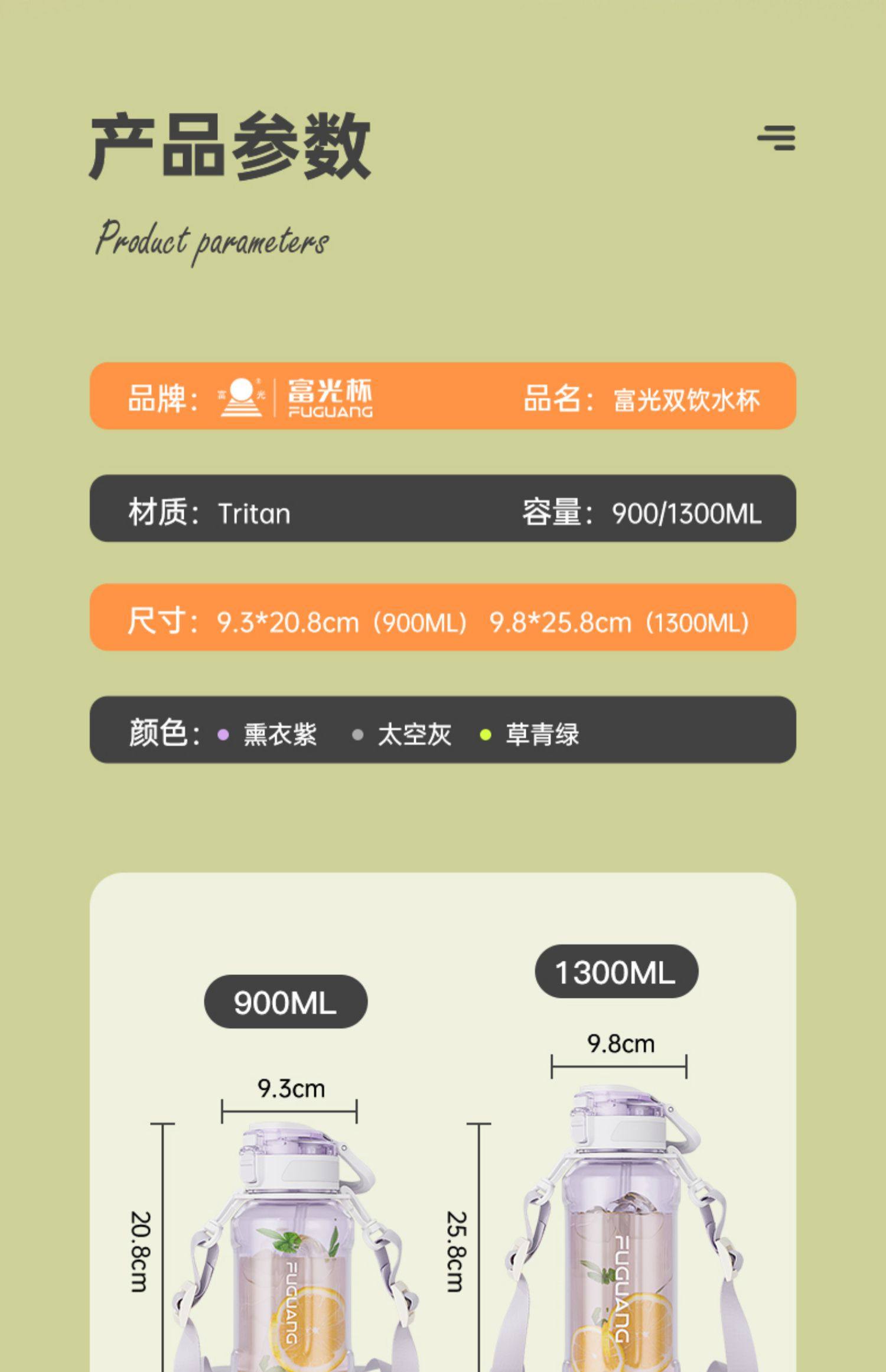 Color Classification Purple 900ml [Upgraded Double-Port Model/Tritan Material Does Not Contain Bpa],Green 900ml [Upgraded Dual-Port Model/Tritan Material Does Not Contain Bpa],Gray 900ml [Upgraded Dual-Port Model/Tritan Material Does Not Contain Bpa],Purple 1300ml [Upgraded Dual-Port Model/Tritan Material Does Not Contain Bpa],Green 1300ml [Upgraded Dual-Port Model/Tritan Material Does Not Contain Bpa],Gray 1300ml [Upgraded Dual-Port Model/Tritan Material Does Not Contain Bpa],Mint Green 900ml [Single Mouth Direct Drinking Model/Tritan Material Does Not Contain Bpa],Candy Powder 900ml [Single Drink Type/Tritan Material Does Not Contain Bpa],Aurora Purple 900ml [Single Drink Version/Tritan Material Does Not Contain Bpa],Mint Green 1300ml [Single Mouth Direct Drinking Model/Tritan Material Does Not Contain Bpa],Candy Powder 1300ml [Single Drink Type/Tritan Material Does Not Contain Bpa],Aurora Purple 1300ml [Single Mouth Direct Drinking Model/Tritan Material Does Not Contain Bpa]
