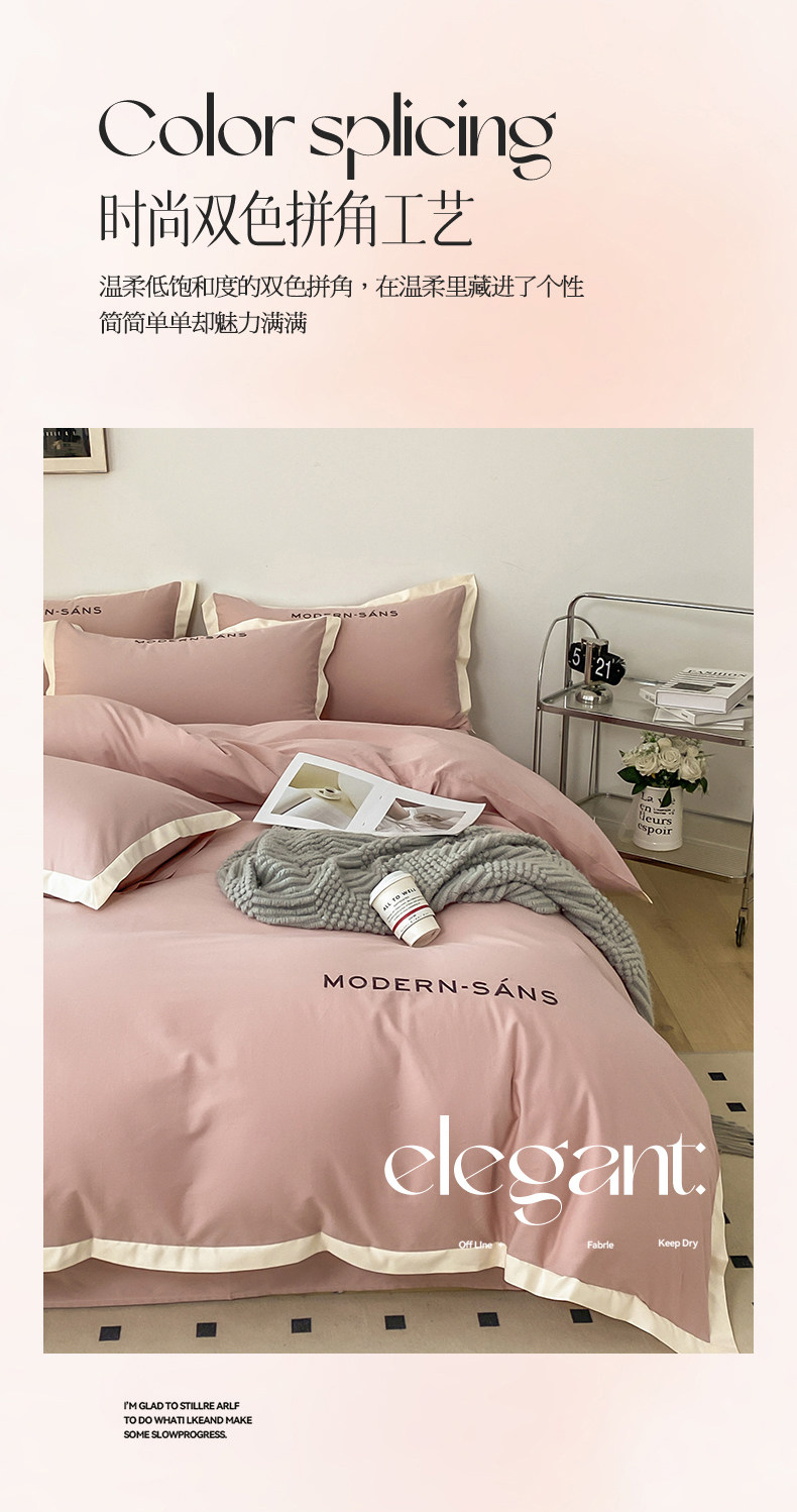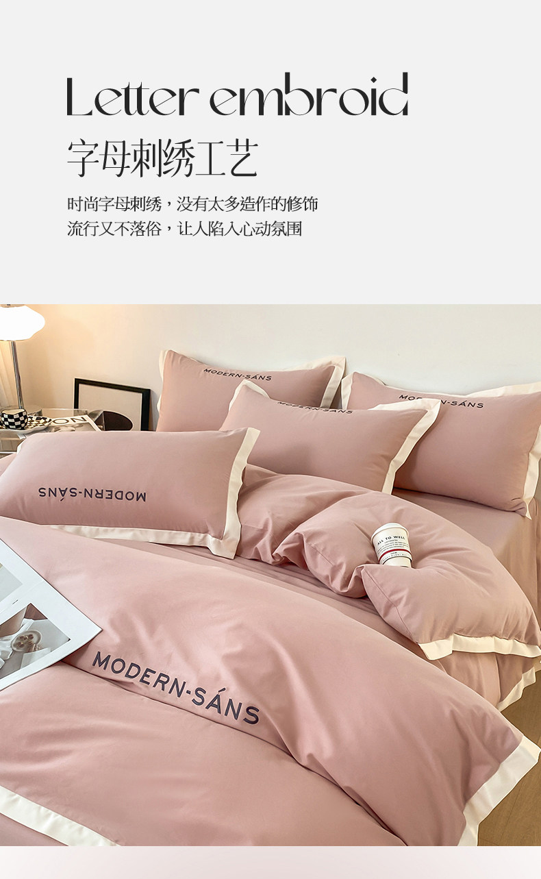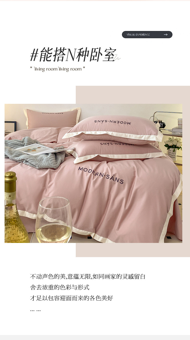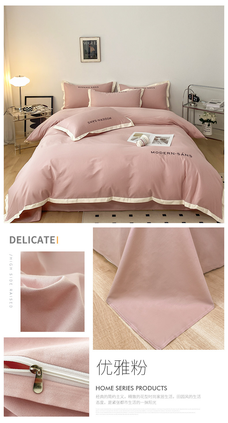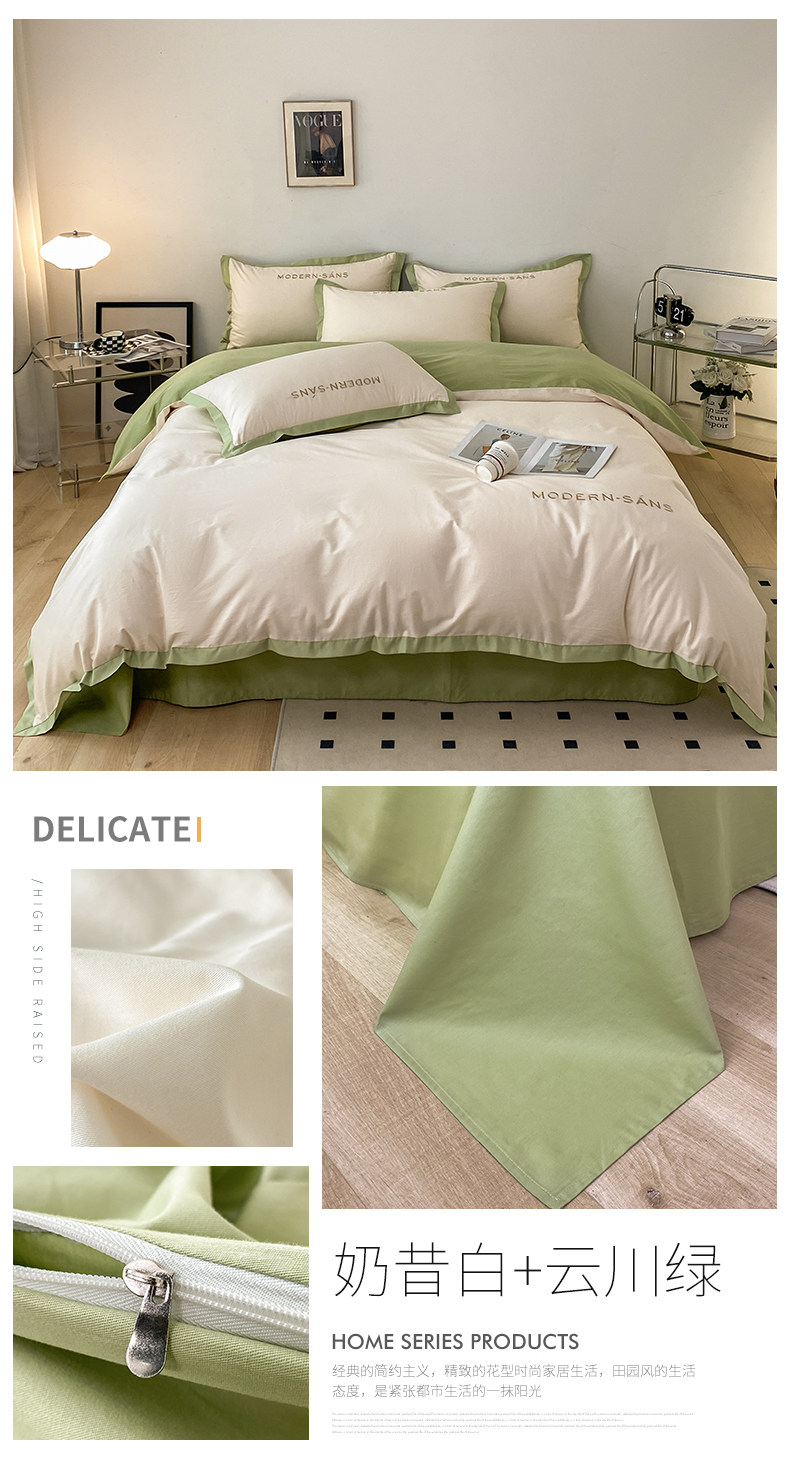 Light luxury four-piece set of pure cotton bedding, fitted sheet, embroidered quilt cover, single bed sheet, quilt cover, three-piece bed set of 4