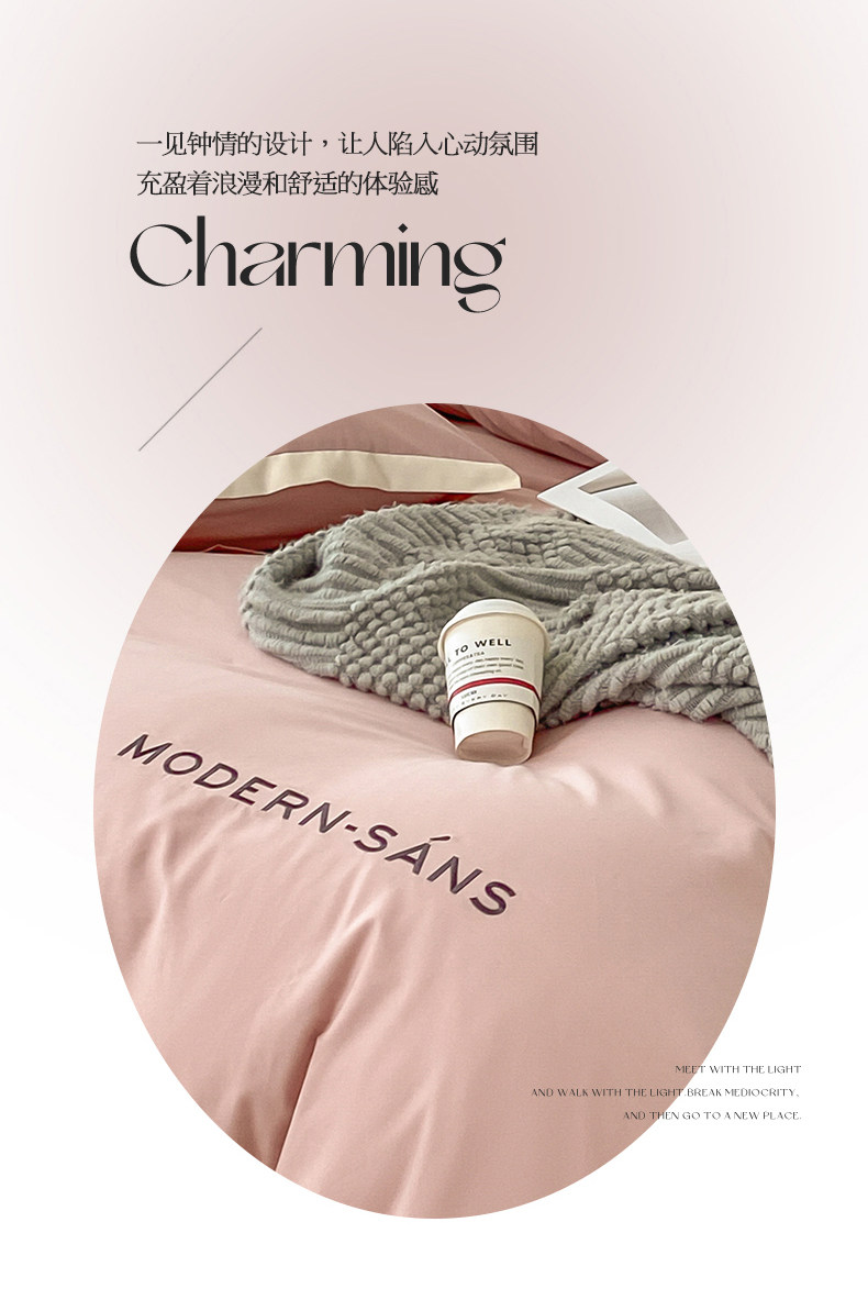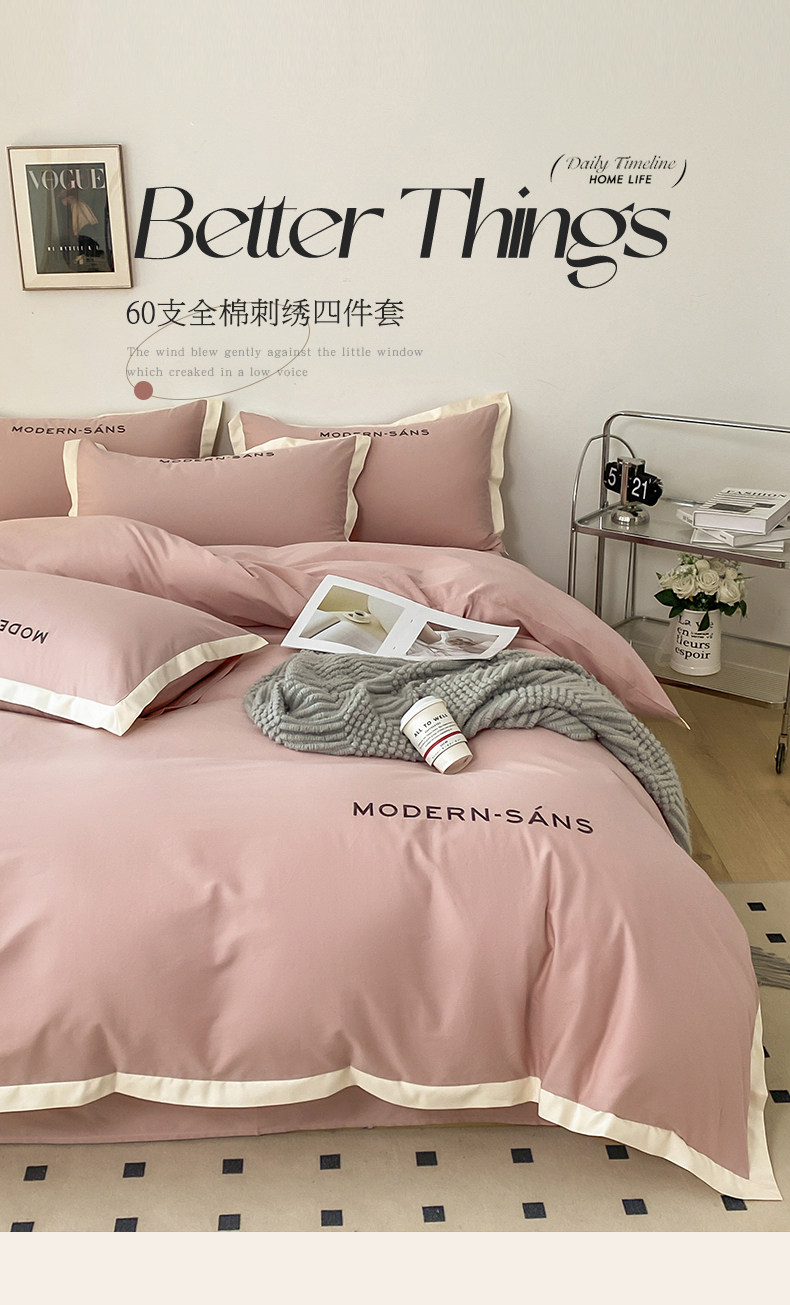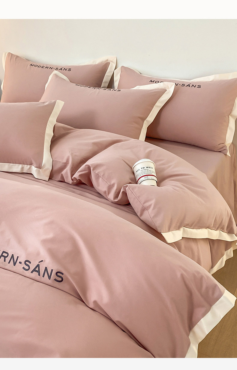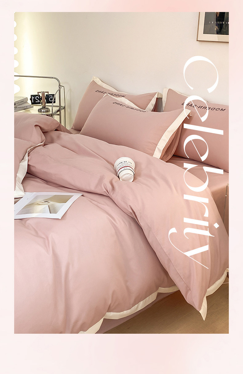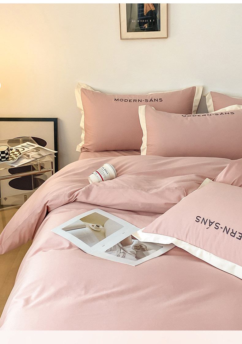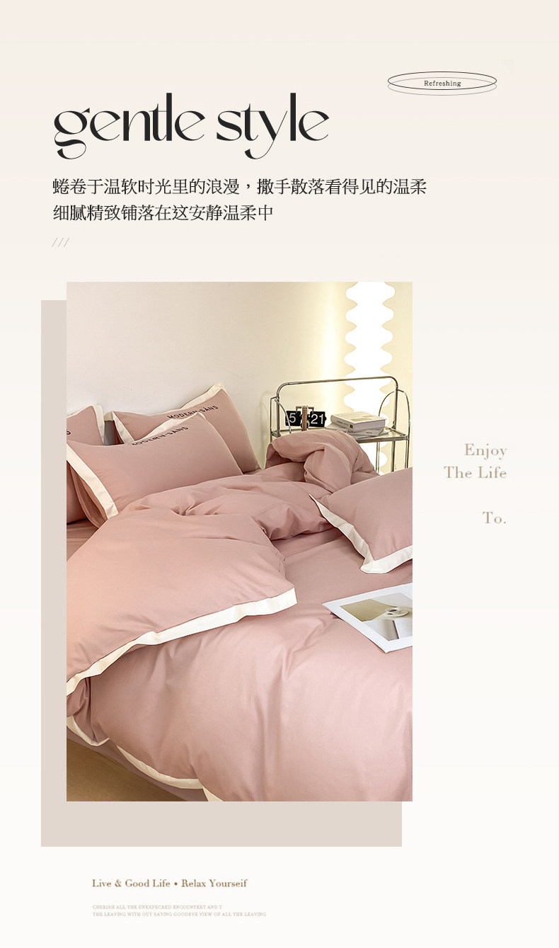 Light luxury four-piece set of pure cotton bedding, fitted sheet, embroidered quilt cover, single bed sheet, quilt cover, three-piece bed set of 4
