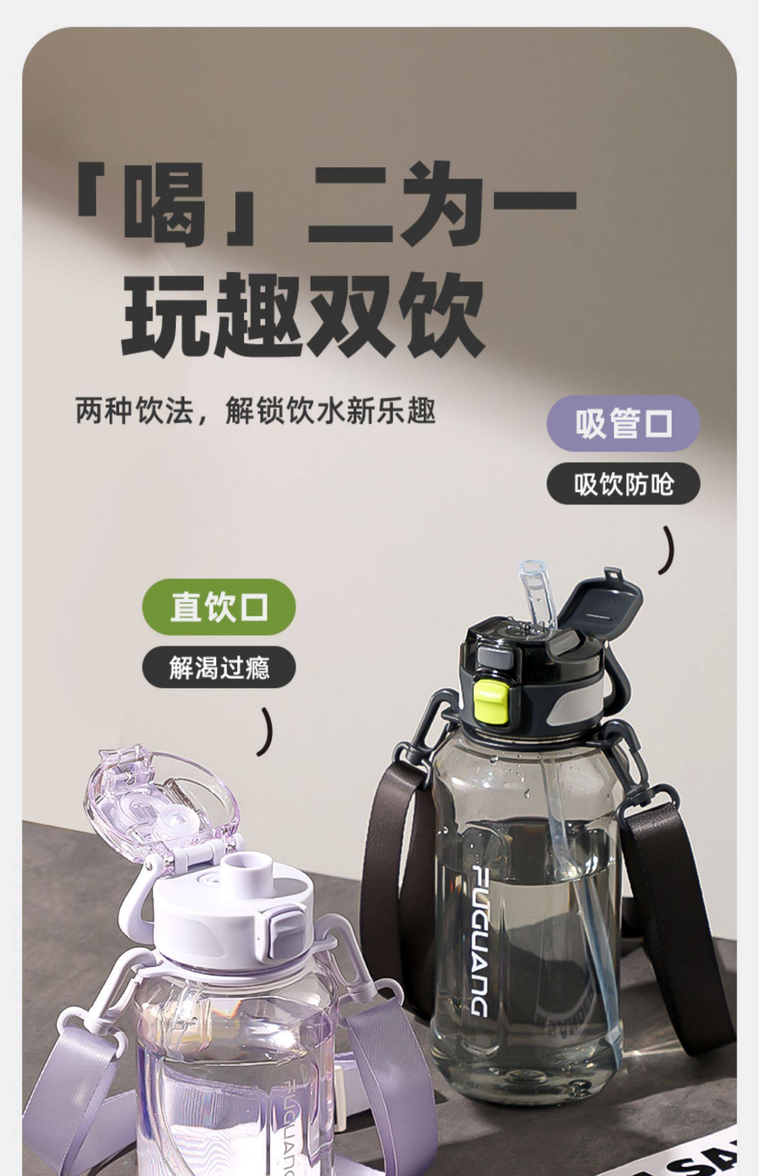 Fuguang Large-Capacity Space Cup for Women, Good-Looking Straw Cup for Men, Summer Outdoor Fitness Plastic Water Cup, High Temperature Resistant