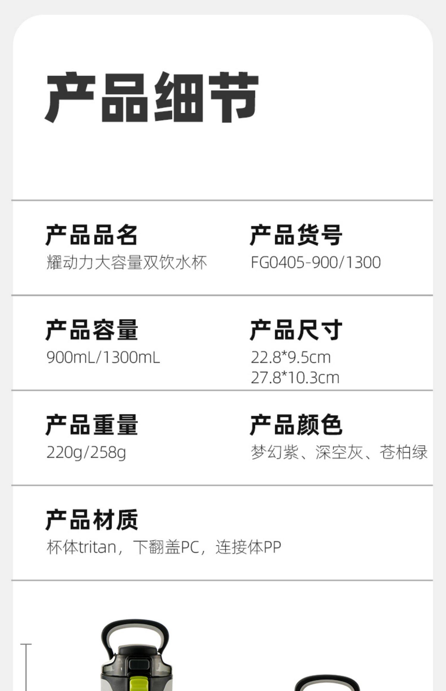 Color Classification Upgraded Dual-Port Model, Gray 900ml [Imported Tritan Material Does Not Contain Bpa],Upgraded Dual-Port Model, Green 900ml [Imported Tritan Material Does Not Contain Bpa],Upgraded Dual-Port Model, Purple 900ml [Imported Tritan Material Does Not Contain Bpa],Upgraded Dual-Port Model, Gray 1300ml [Imported Tritan Material Does Not Contain Bpa],Upgraded Dual-Port Model, Green 1300ml [Imported Tritan Material Does Not Contain Bpa],Upgraded Dual-Port Model, Purple 1300ml [Imported Tritan Material Does Not Contain Bpa],Single-Serve Direct Drink Bottle, Pink, 900ml [Imported Tritan Material, Bpa-Free],Single-Serve Direct Drink Bottle, Green, 900ml [Imported Tritan Material, Bpa-Free],Single-Serve Direct Drink Bottle, Purple, 900ml [Imported Tritan Material, Bpa-Free],Single-Serve Direct Drink Bottle, Pink, 1300ml [Imported Tritan Material, Bpa-Free],Single-Serve Direct Drink Bottle, Green, 1300ml [Imported Tritan Material, Bpa-Free],Single-Serve Direct Drink Bottle, Purple, 1300ml [Imported Tritan Material, Bpa-Free]