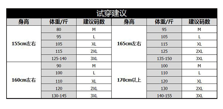 China (cm) 160-165/84-86 165-170 / 88-90 167-172 / 92-96 168-173 / 98-102 170-176 / 106-110