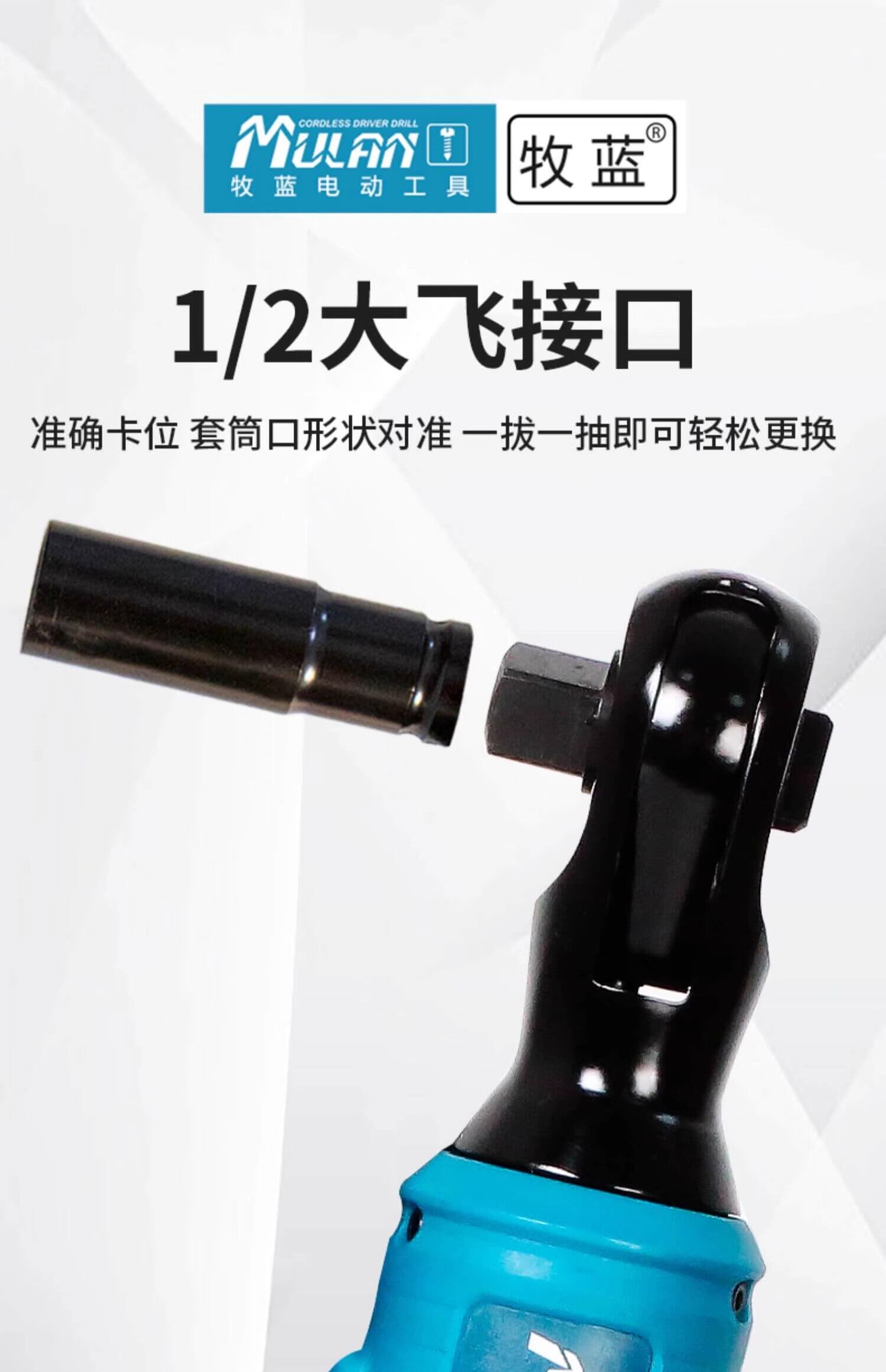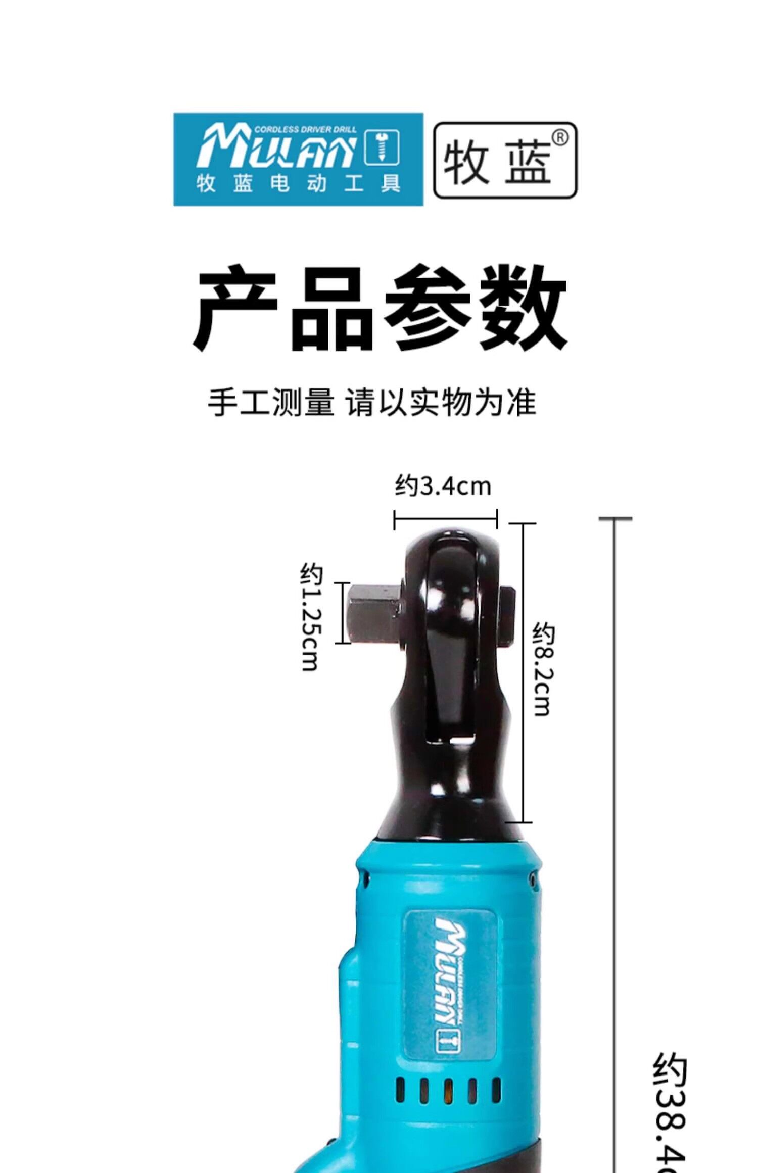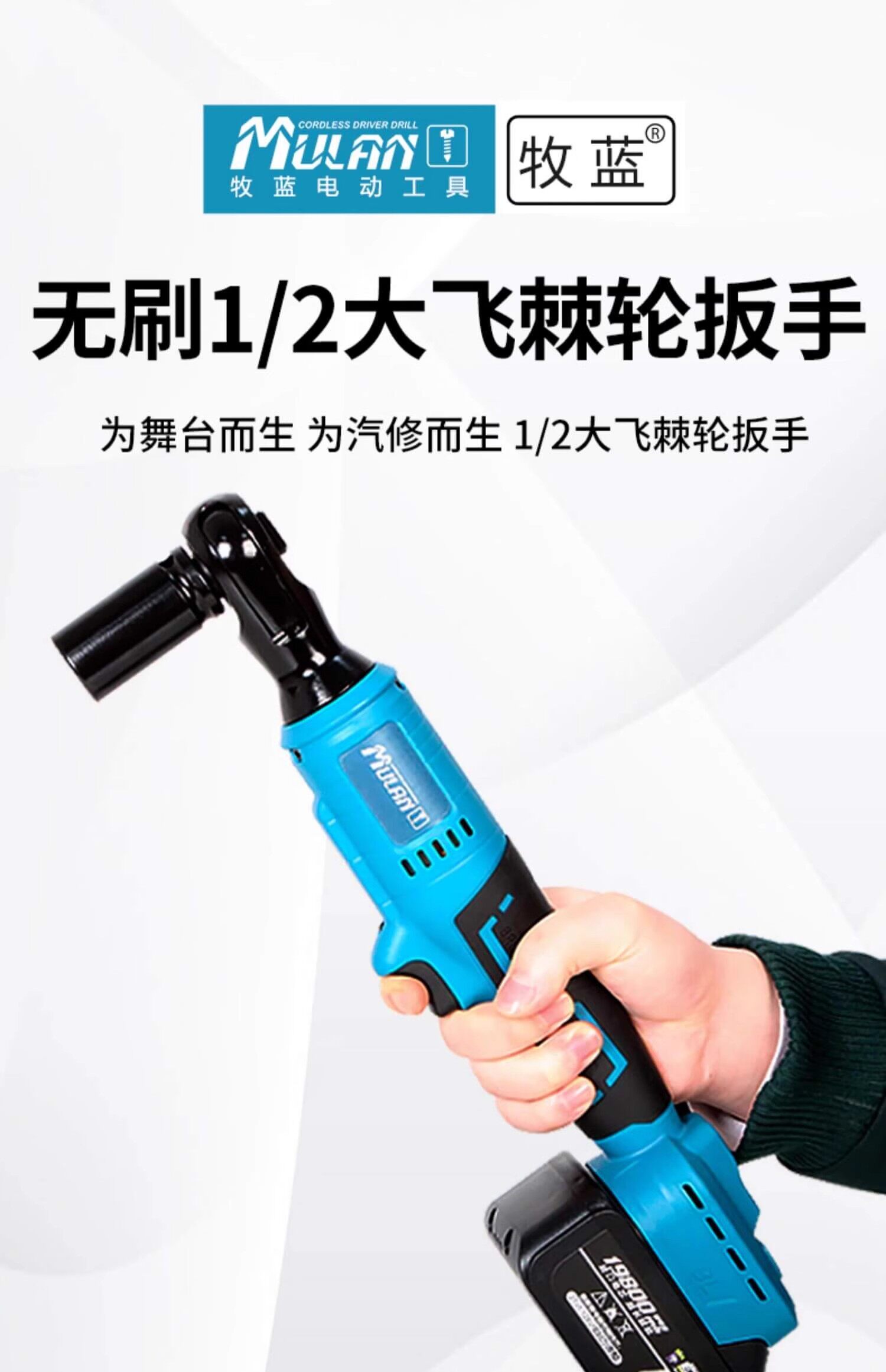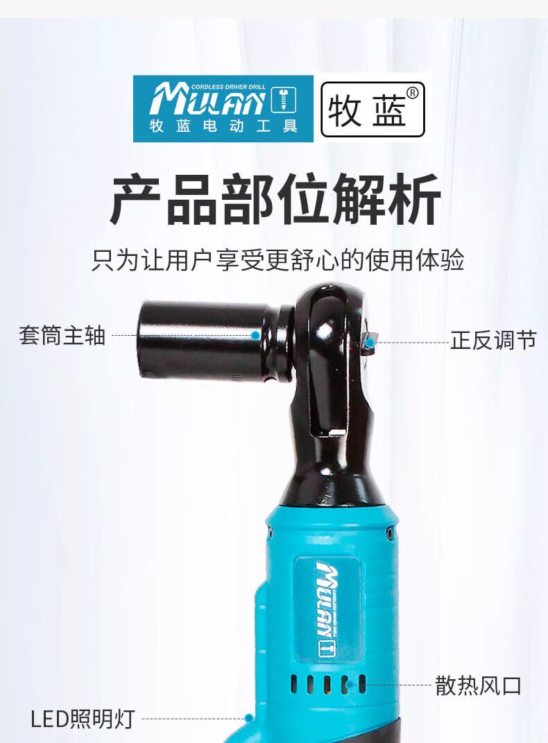 Mulan high-torque 90-degree electric ratchet wrench rechargeable right-angle rotary cultivator special wrench truss angle tool