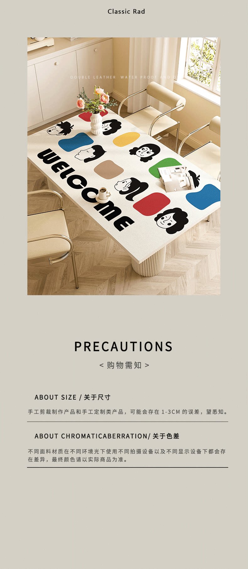 Specifications 40*60cm Collection and purchase, priority delivery,60*60cm small square table for washing machine,60*120CM newly upgraded fifth generation leather,70*120cm, non-yellowing and durable,70*130cm regular coffee table, universal style,70*140cm maternal and infant grade antibacterial and odorless,80*120cm scratch-resistant and wear-resistant knife and fork,80*130cm for regular family dining table,80*140cm waterproof, anti-scald and anti-oil,85*140cm soft and compliant thickened material,90*150cm High quality and low price, buy expensive and refund the money,90*160cm Collection and purchase will be shipped first,Please contact customer service for customization. Please do not take private photos.