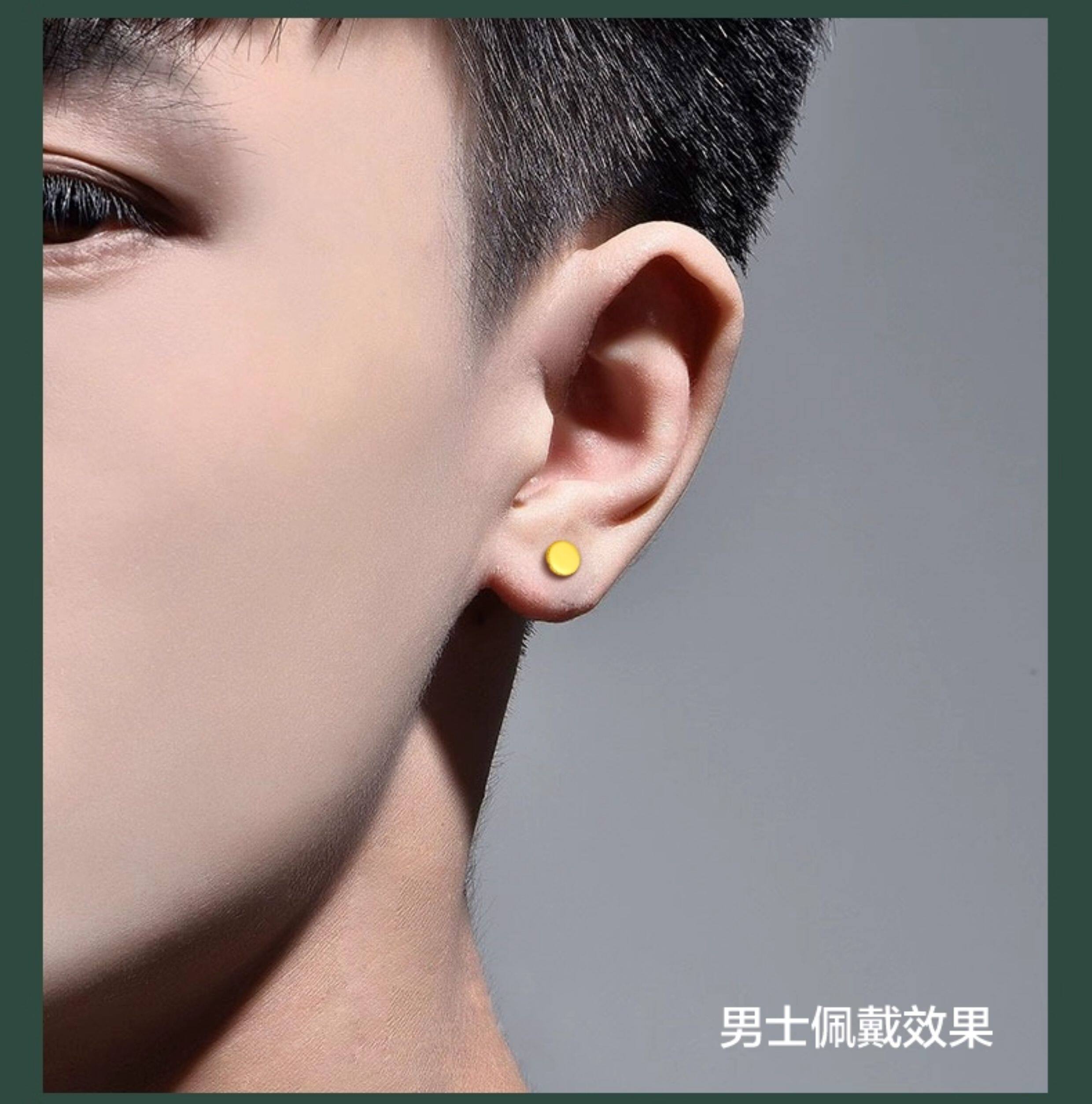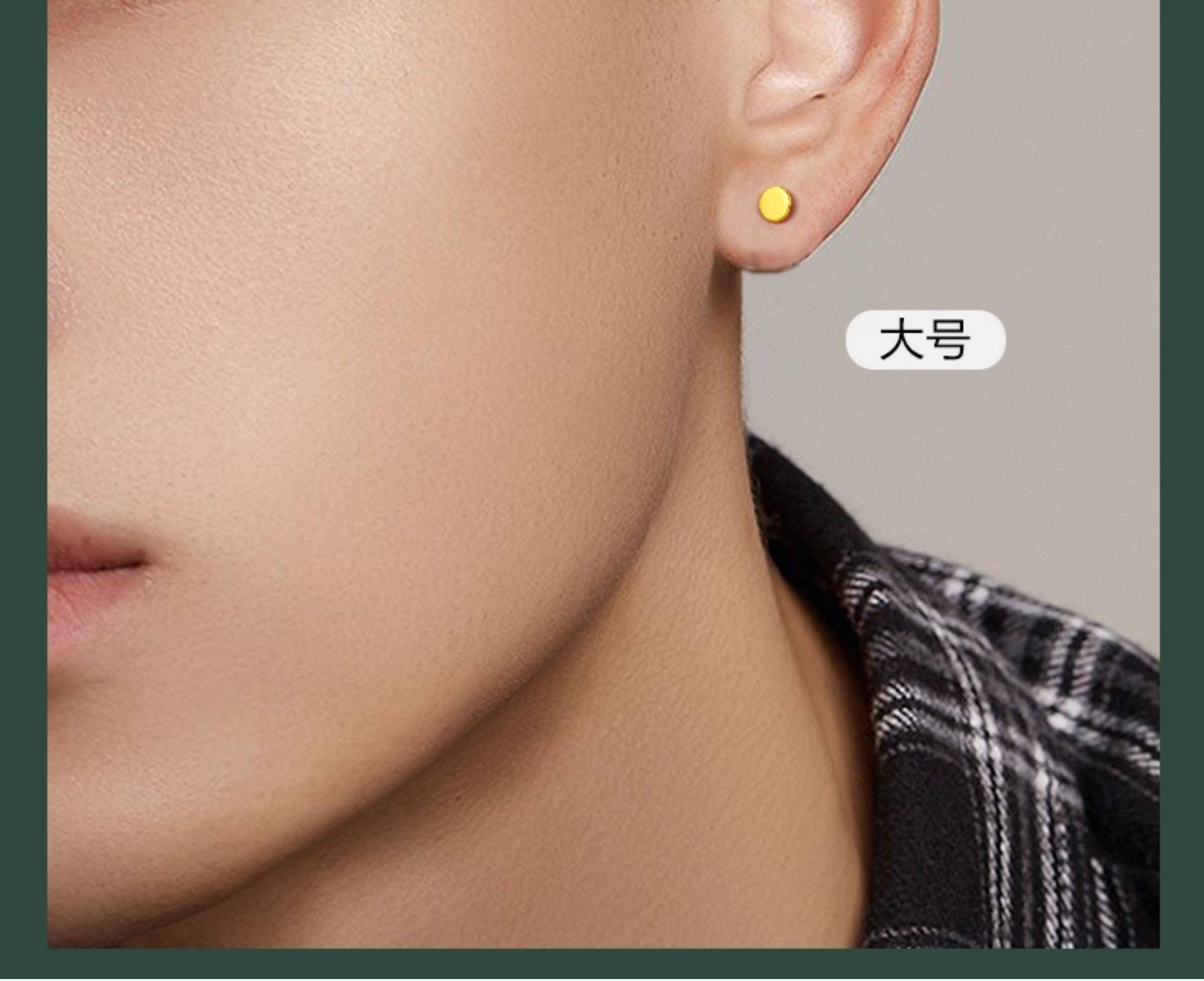 Can be engraved gold earrings men's 999 pure gold ear bone nail piercing round earrings Valentine's Day gift