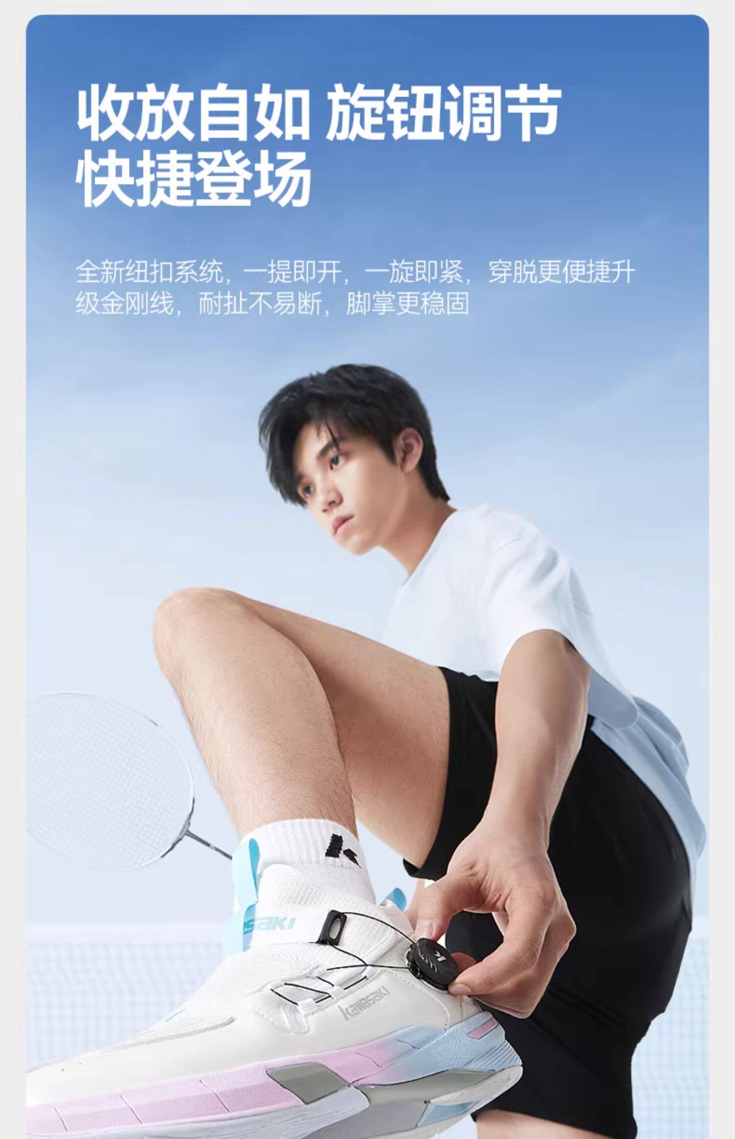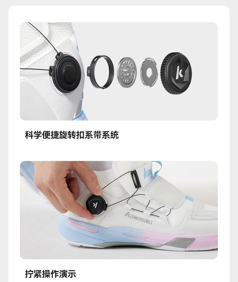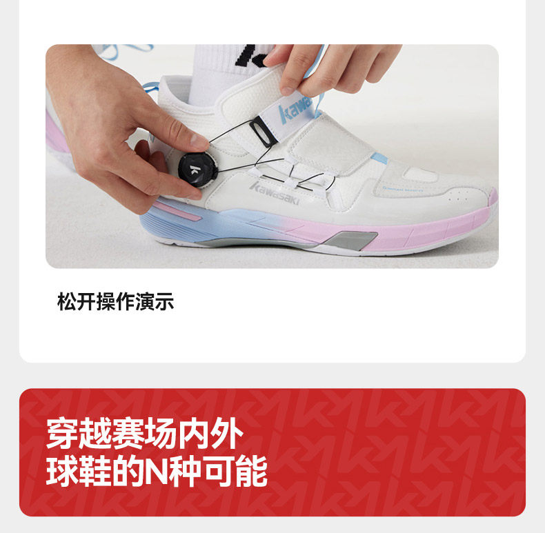 Kawasaki Badminton Shoes Cross 2 Men's and Women's Non-slip Shock Absorbing Breathable Button-Free Lace-Free Sports Shoes Cross 2.0