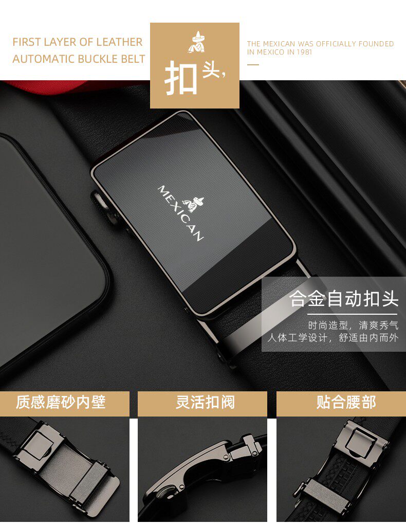 Scarecrow belt men's genuine leather belt automatic buckle business top layer pure cowhide youth casual simple trouser belt for men