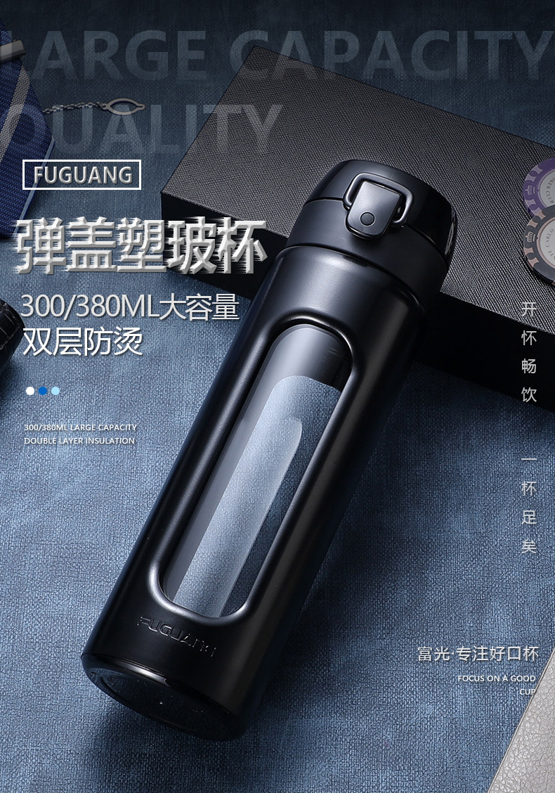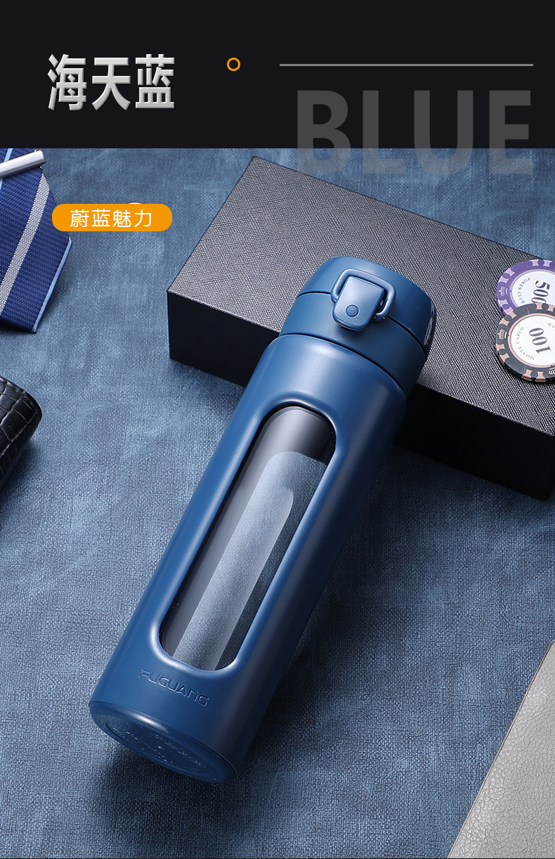 Fuguang Glass Cup for Men, Personal Water Cup for Office, Home, Portable, Car-Mounted, Tea and Water Separation, Tea Brewing Cup for Women