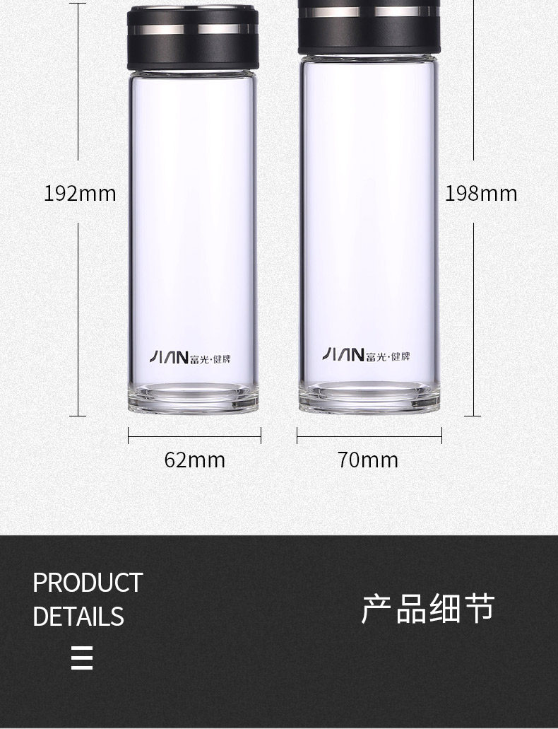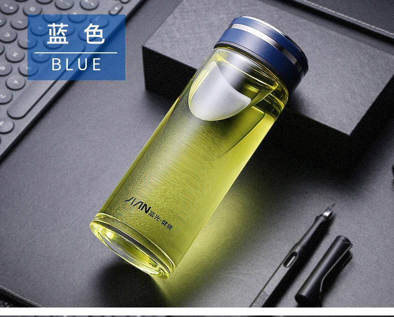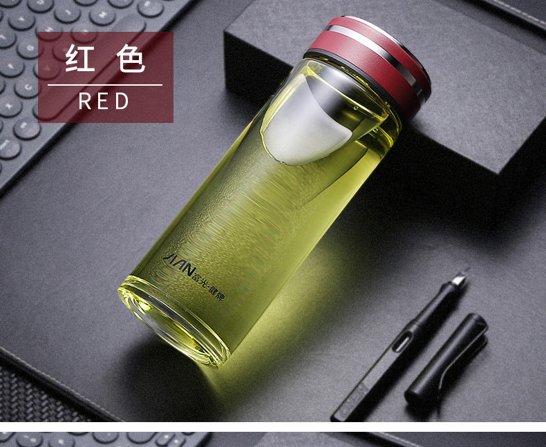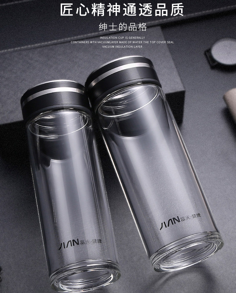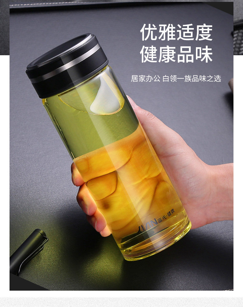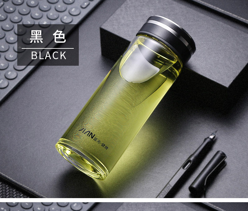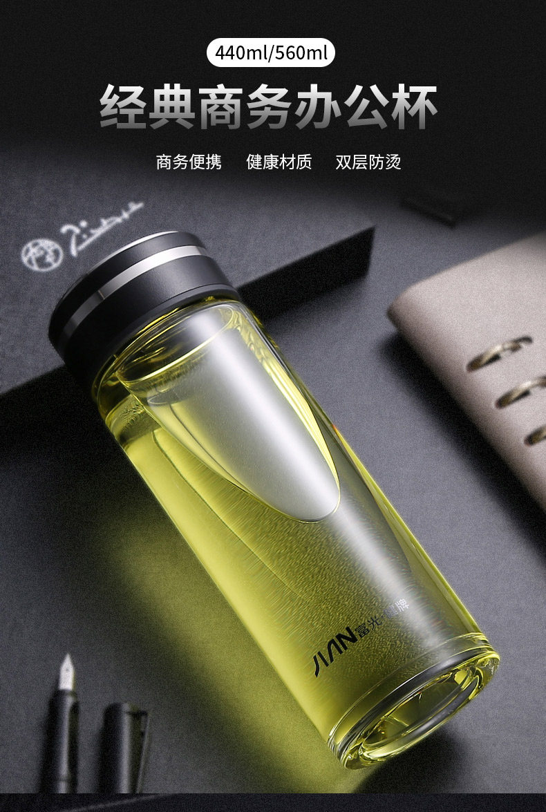 Fuguang Single-Layer Glass Cup for Men, High-End Portable Tea Cup for Women, High-Temperature Resistant Water Cup, Large-Capacity Tea and Water Separation Cup