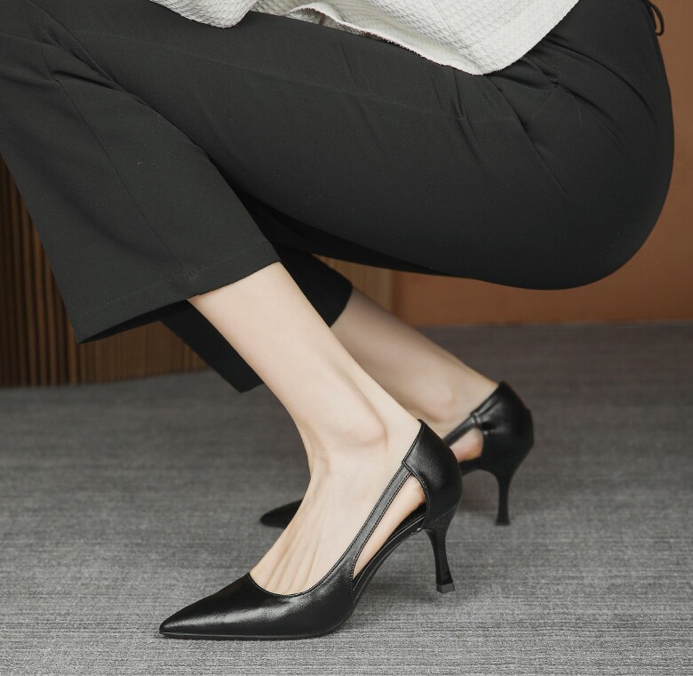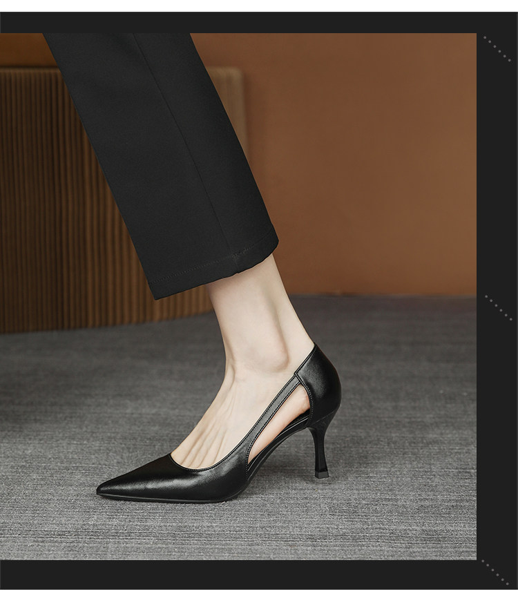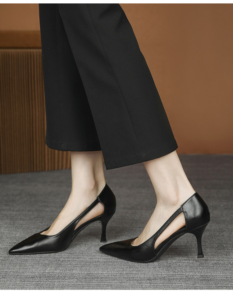 Professional Stiletto High Heels for Women 2025 New Versatile Low Heel Hollow Summer Work Sandals for Women