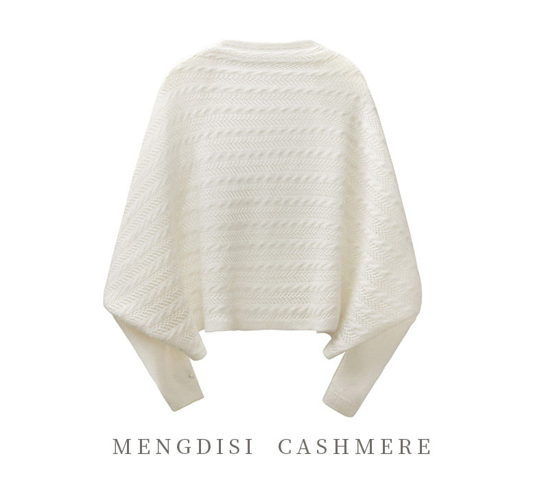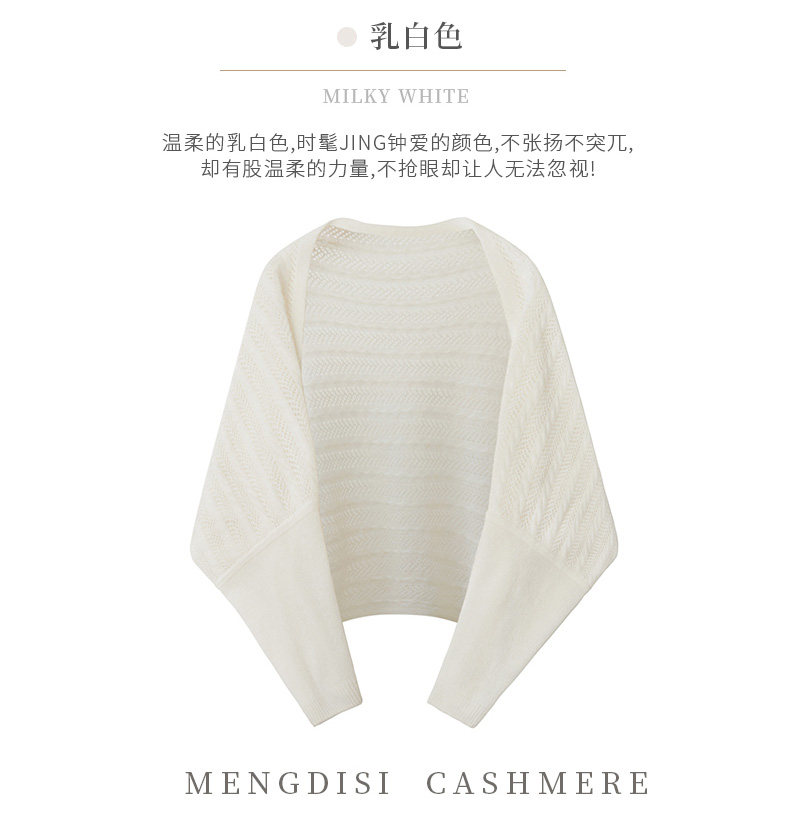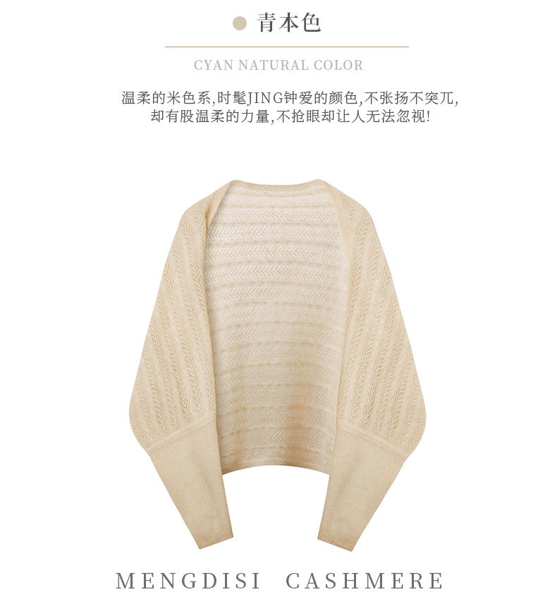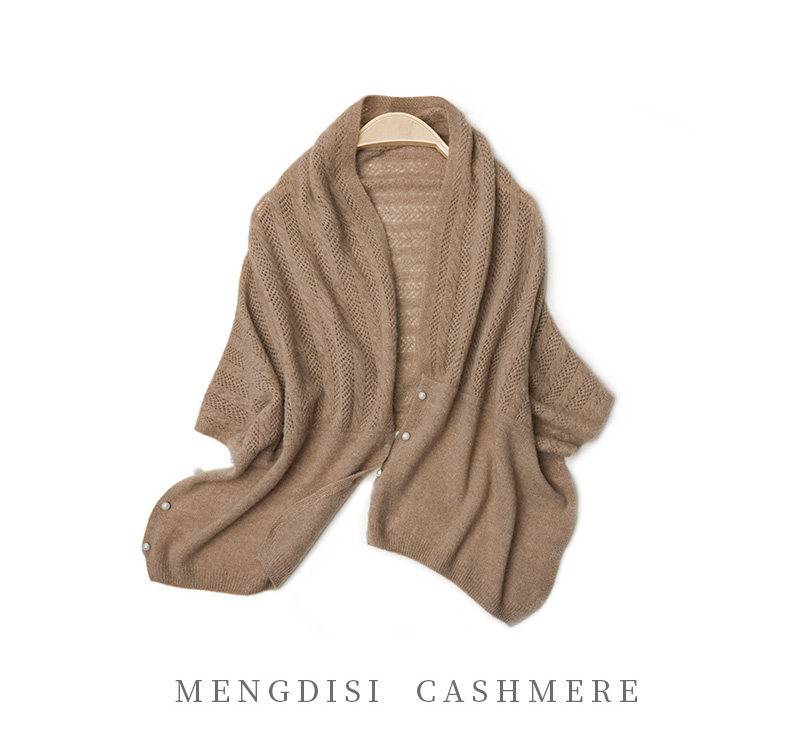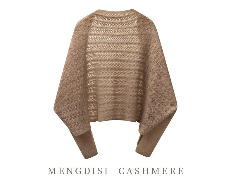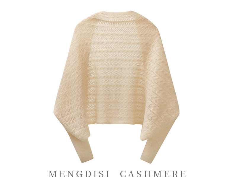 Autumn and Winter 100% Pure Cashmere Shawl for Women, Sun Protection Cape, Hollow Knit Poncho, Cardigan, Air-Conditioned Room Outerwear