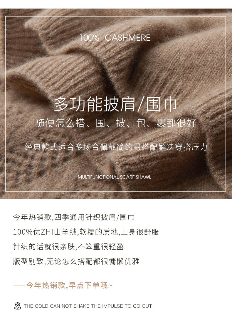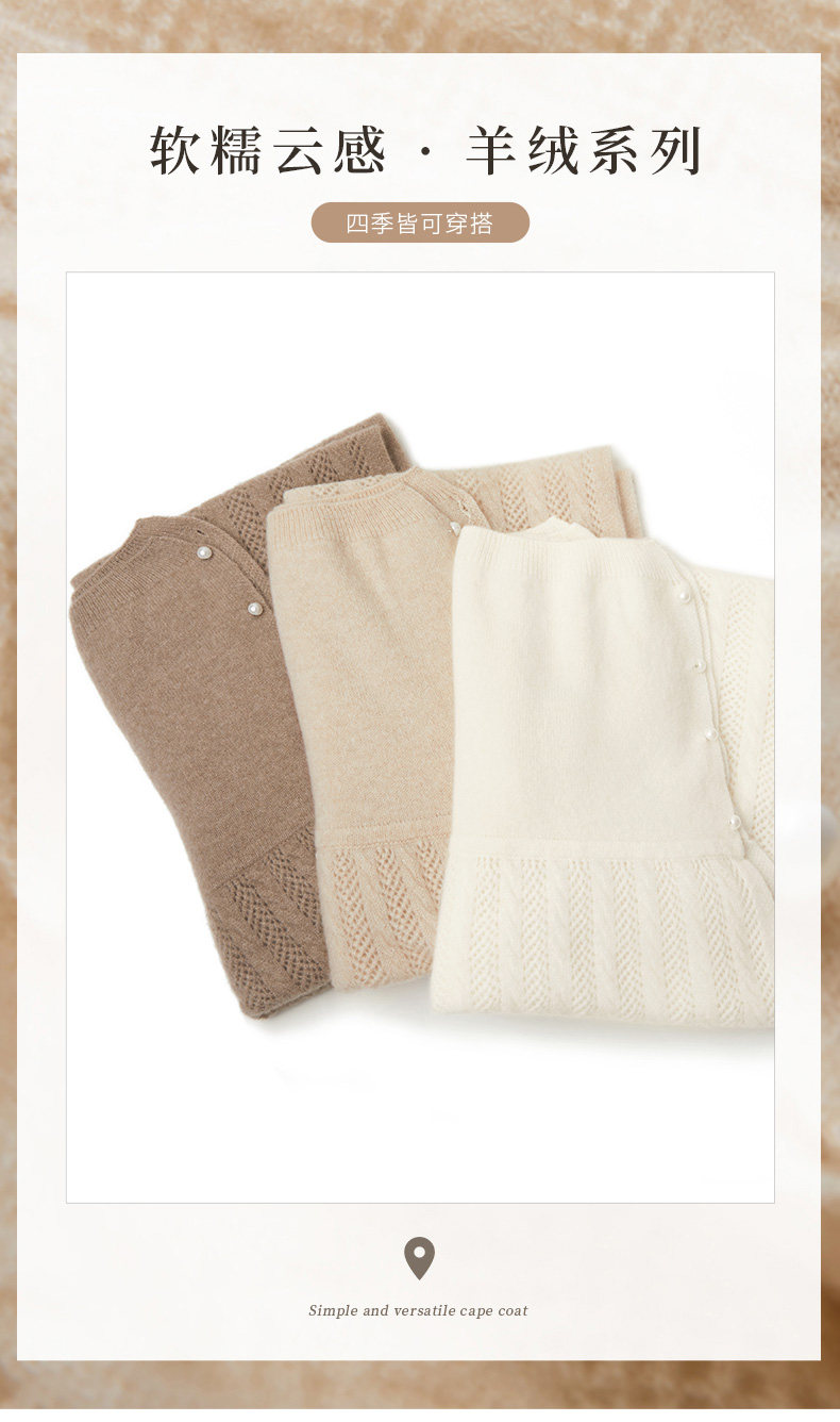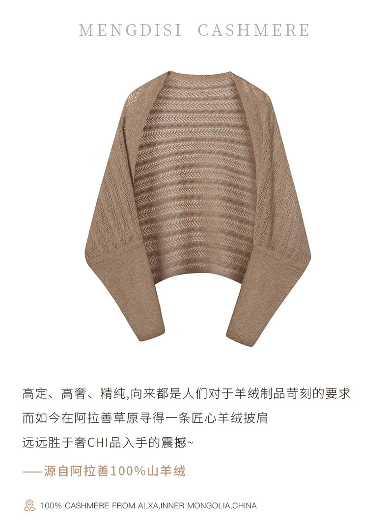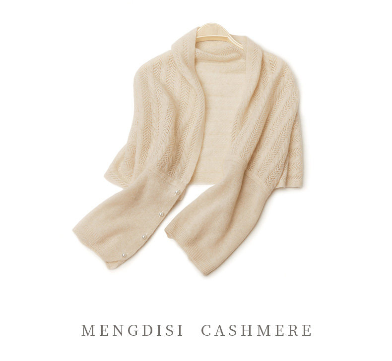 Autumn and Winter 100% Pure Cashmere Shawl for Women, Sun Protection Cape, Hollow Knit Poncho, Cardigan, Air-Conditioned Room Outerwear