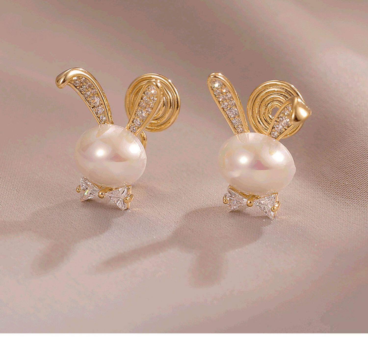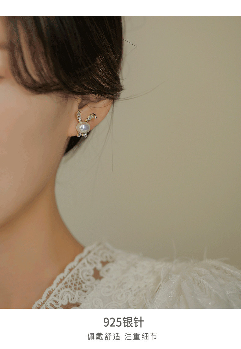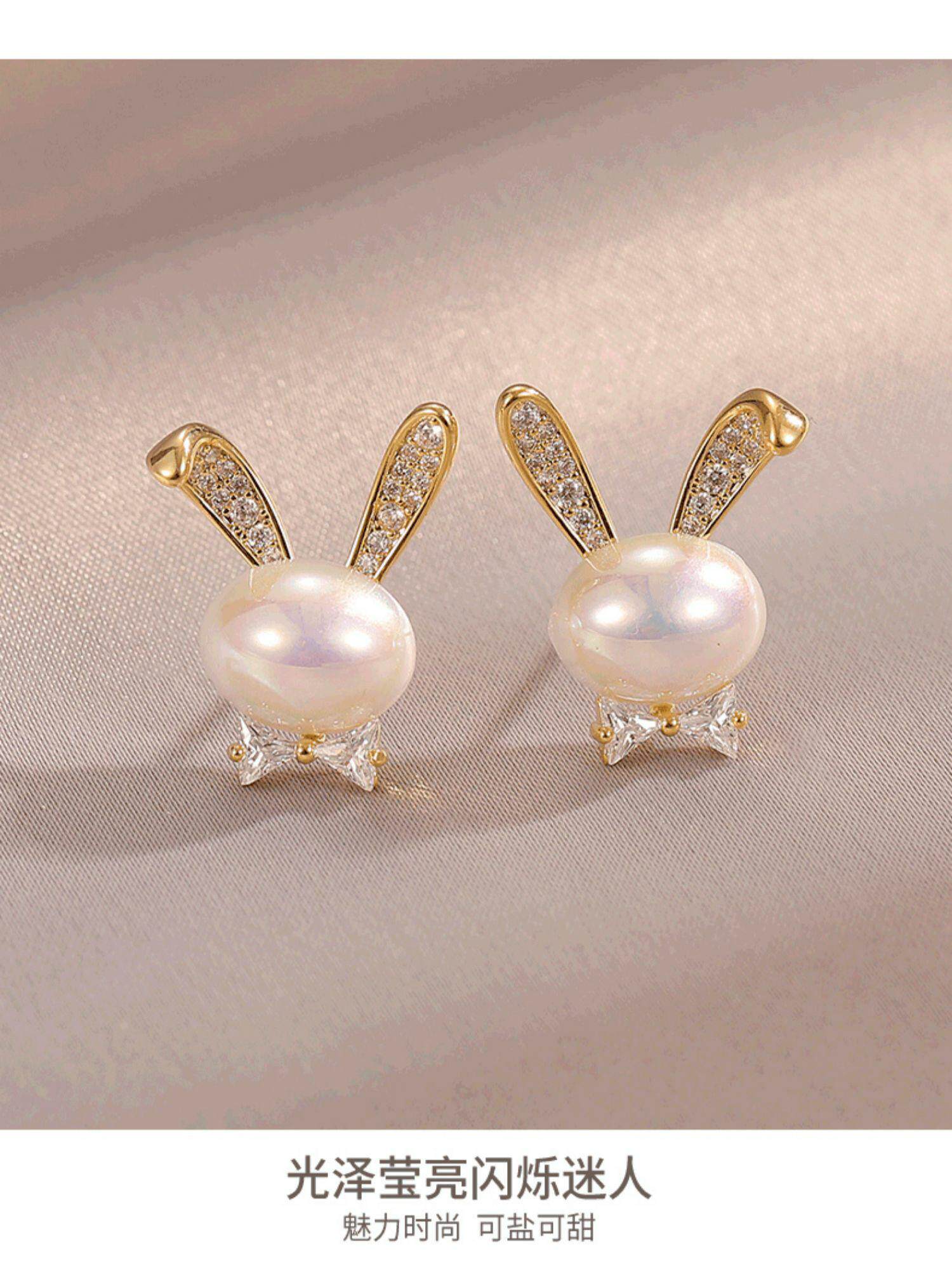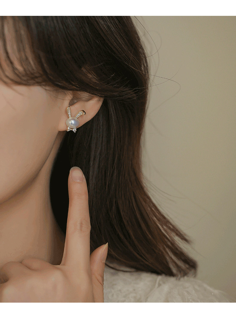 British Dura Walk Pearl Rabbit Earrings for Women, Versatile Sterling Silver Earrings, Youthful Luxury Trendy Style Studs