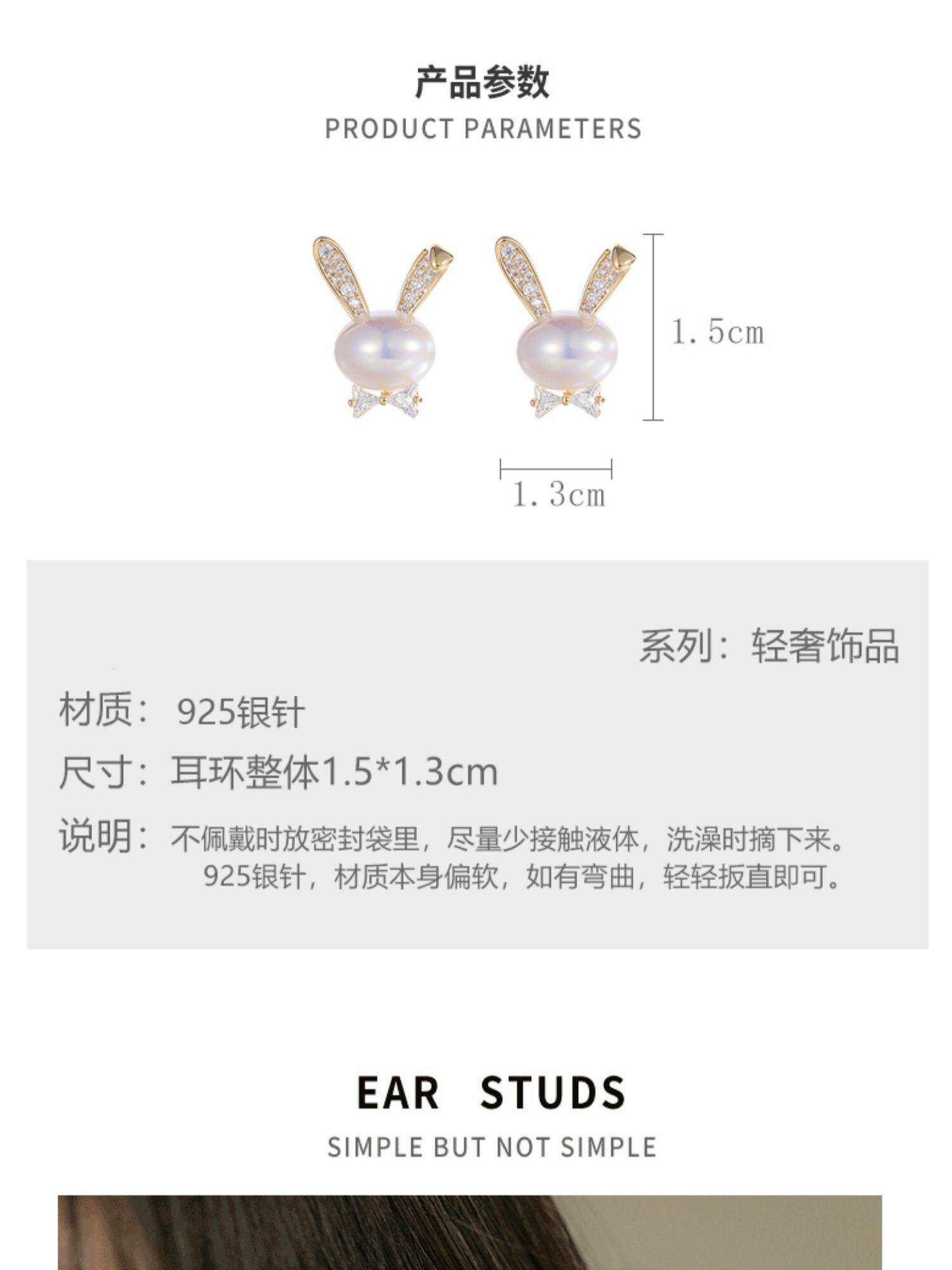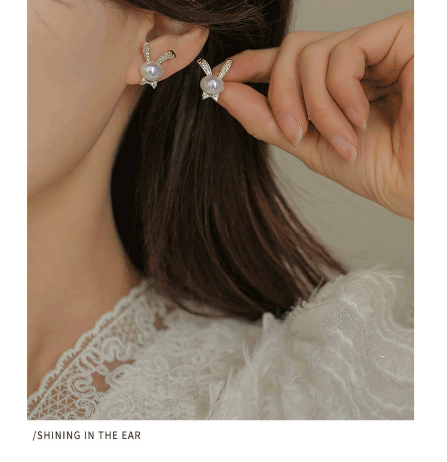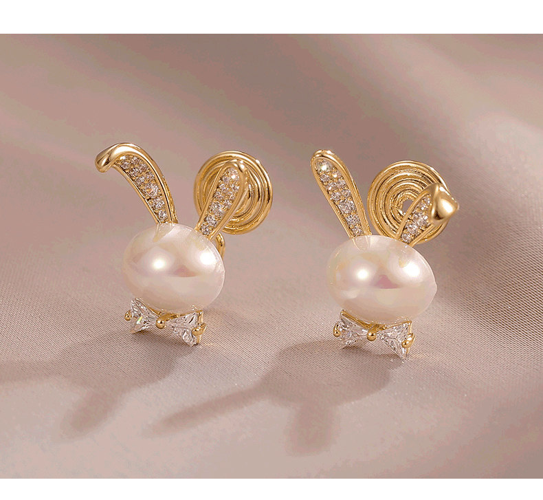 British Dura Walk Pearl Rabbit Earrings for Women, Versatile Sterling Silver Earrings, Youthful Luxury Trendy Style Studs