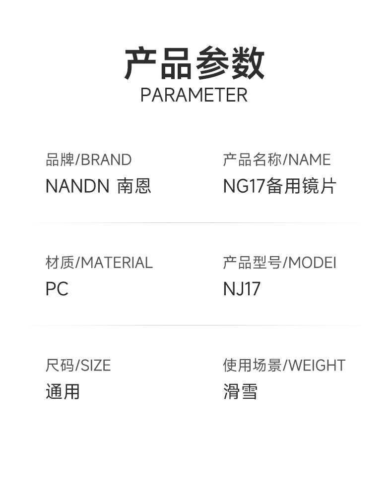[Ng17 Spare Lens]Nandn Ski Goggles Clear Lens Night Vision Enhancing Lens Anti-Fog Spare Lens