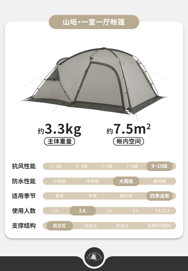 Naturehike Nokeshandi one-bedroom and one-living tent outdoor camping summer weatherproof double camping overnight