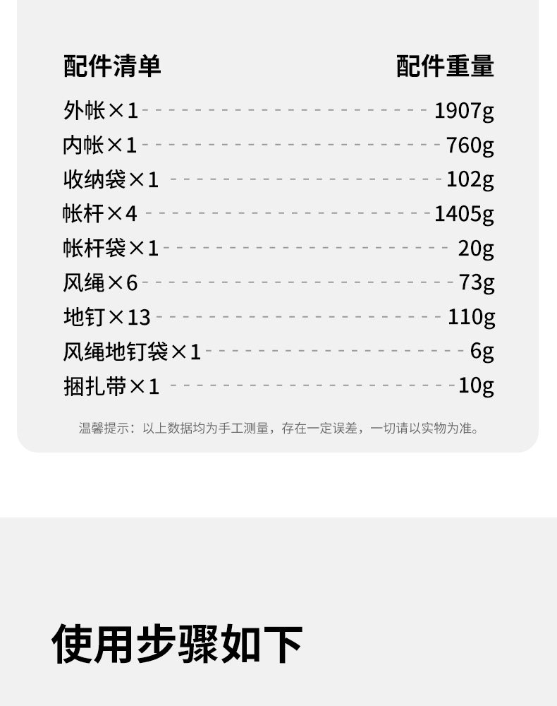 Tent weight About 3.3kg (excluding inner tent and accessories)