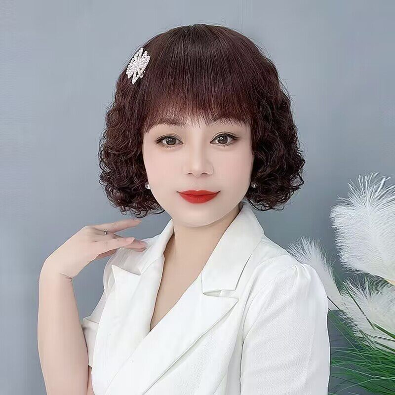 Wool Curl New Style Female Natural Lifelike Short Curly Hair Fashion Mom Simulation Human Hair Cover for Middle-aged and Elderly Medium and Long Curly Hair Cover