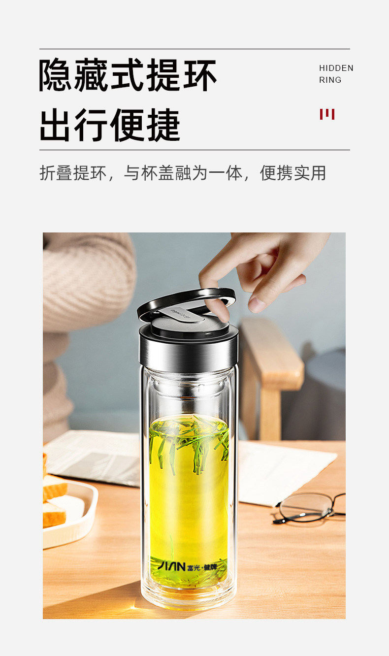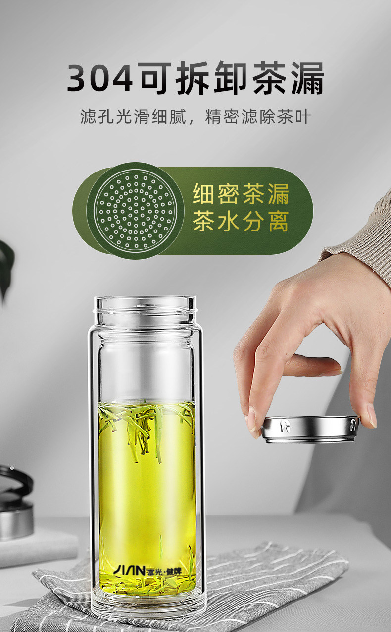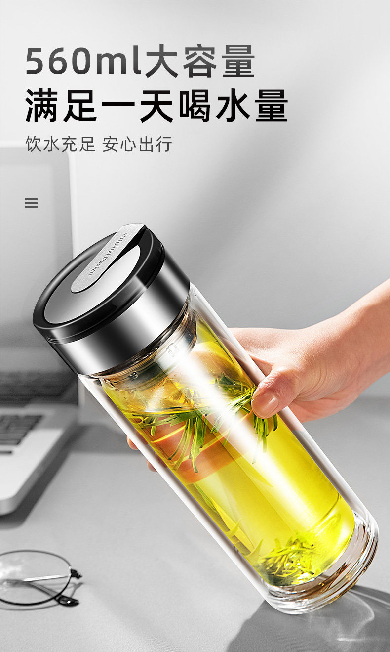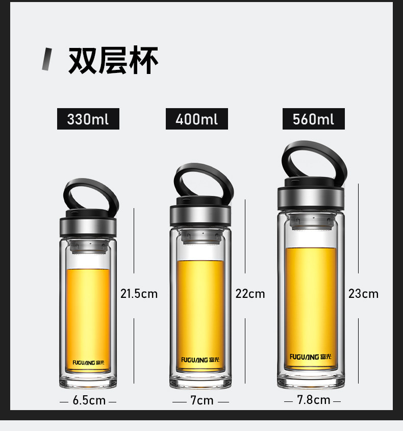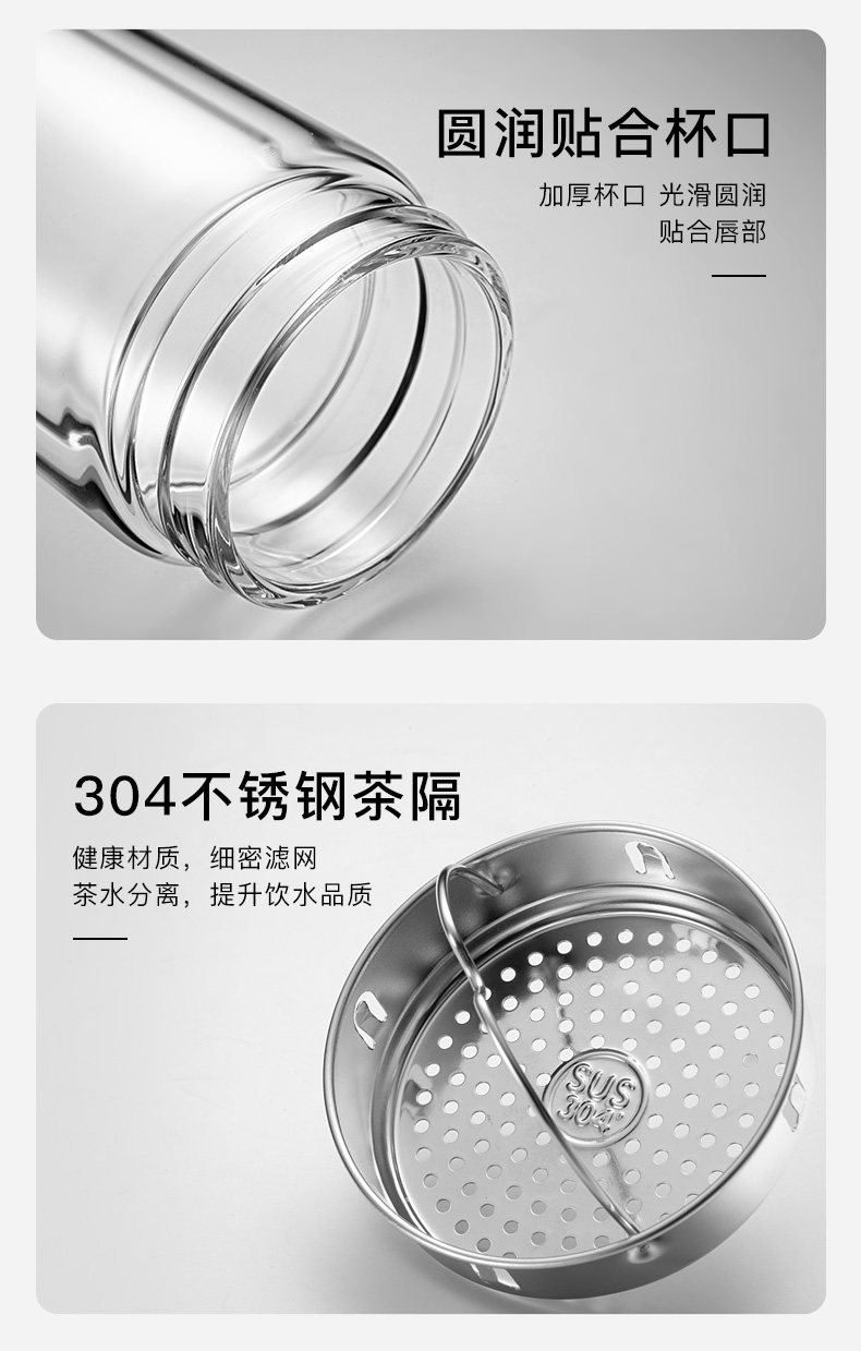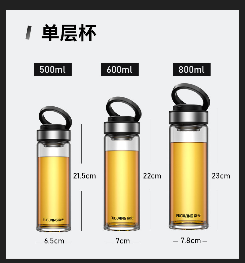 Fuguang Single-Layer Glass Cup, Double-Layer Insulation, High Temperature Resistance, Men's Car-Mounted Large-Capacity Tea and Water Separation Tea Brewing Cup