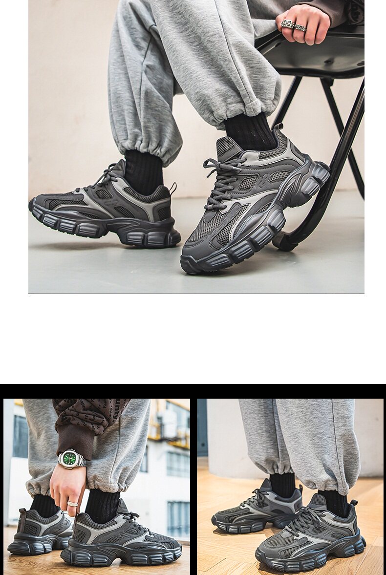 Men's shoes 2025 new autumn youth sports and leisure running Internet celebrity popular black heightening thick-soled dad shoes