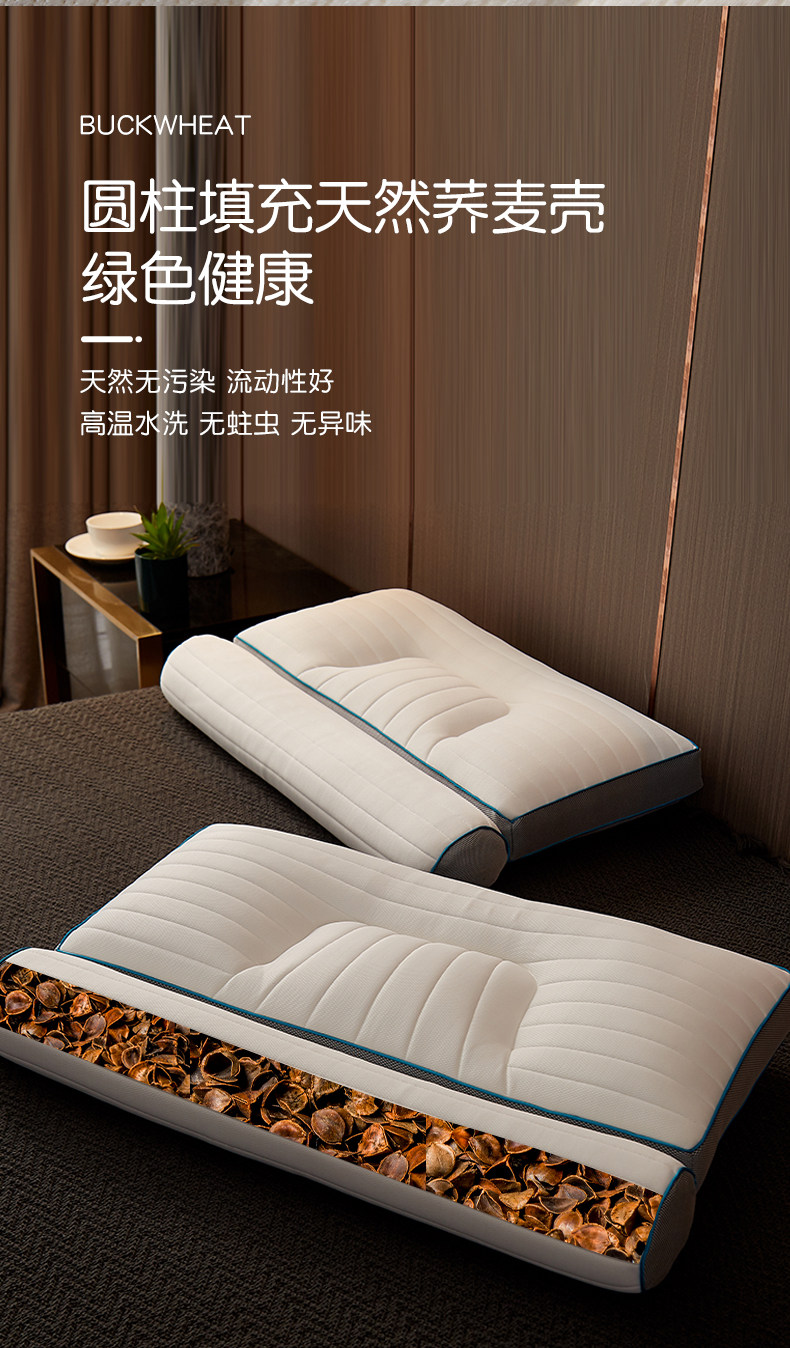 Latex pillow, buckwheat pillow core, cylindrical full buckwheat shell pillow, anti-traction pillow, cervical vertebra protection pillow, sleep aid, one pair for the whole head