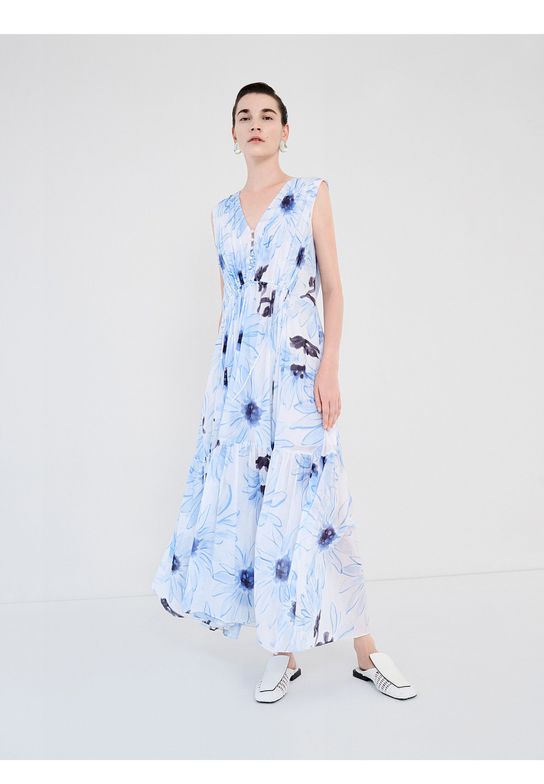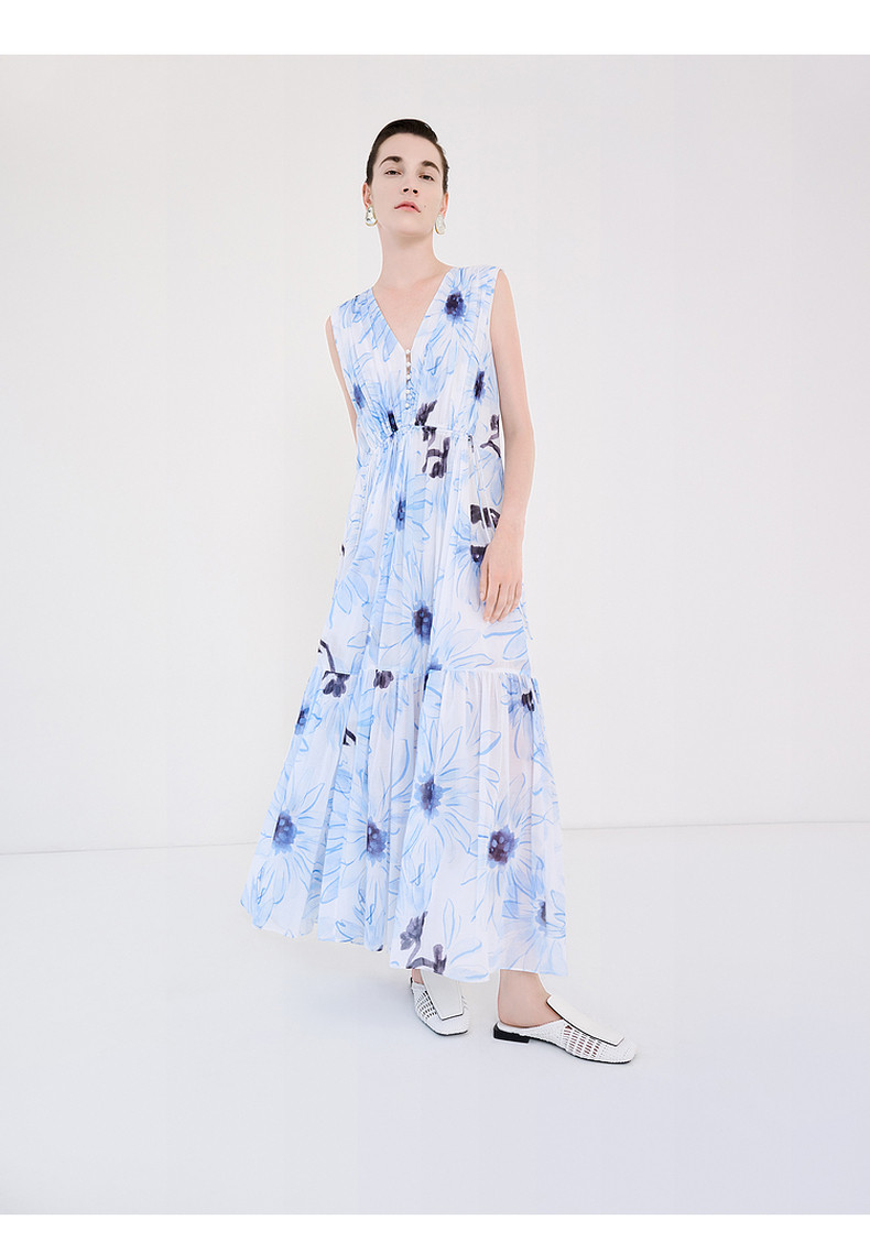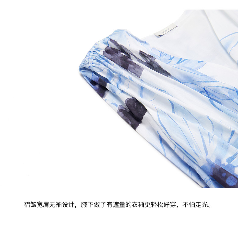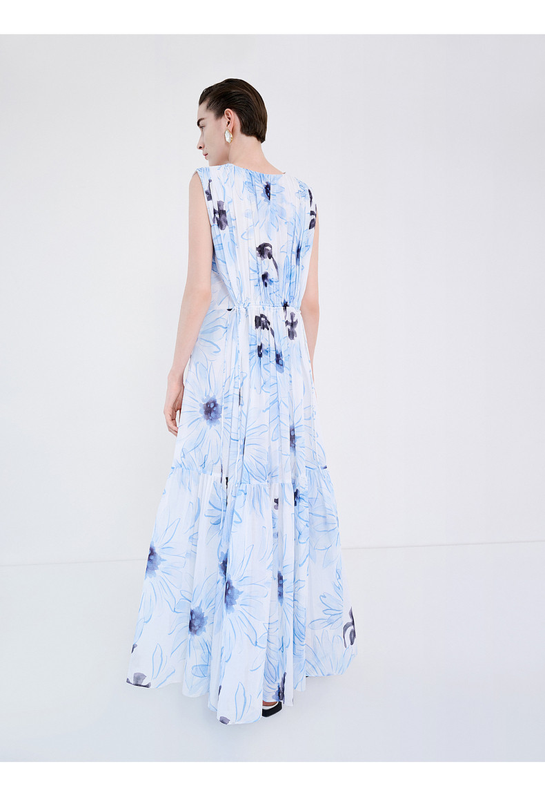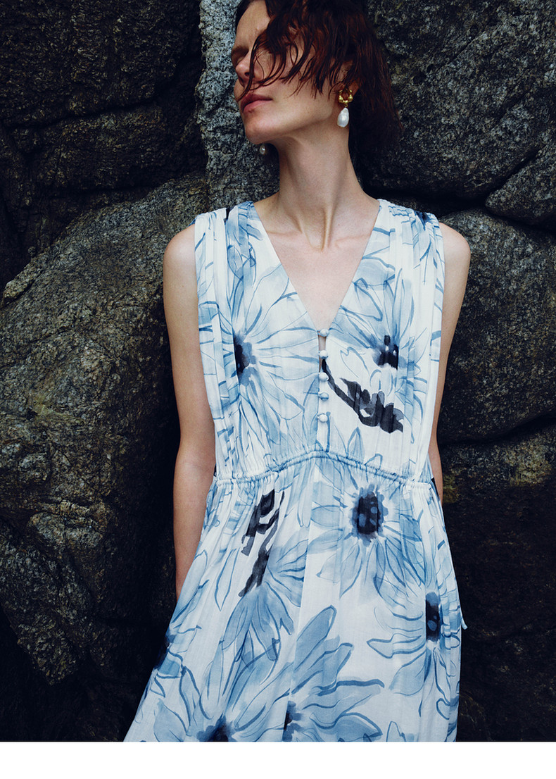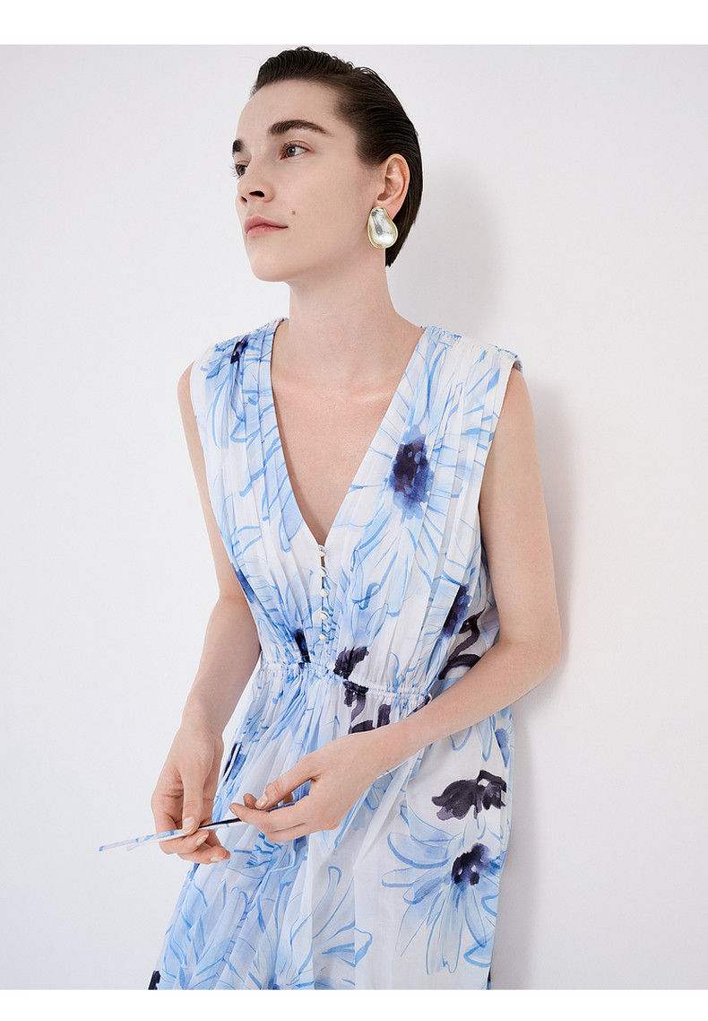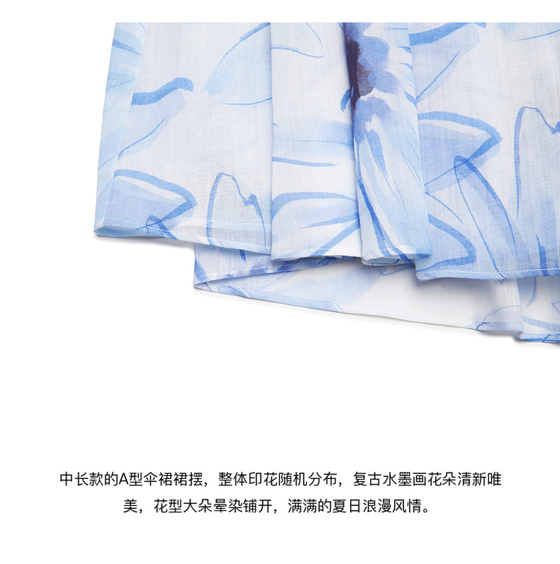 Edition dress women's summer new resort style ink printed cotton and linen dress EBC2DRS059