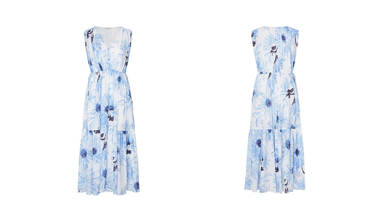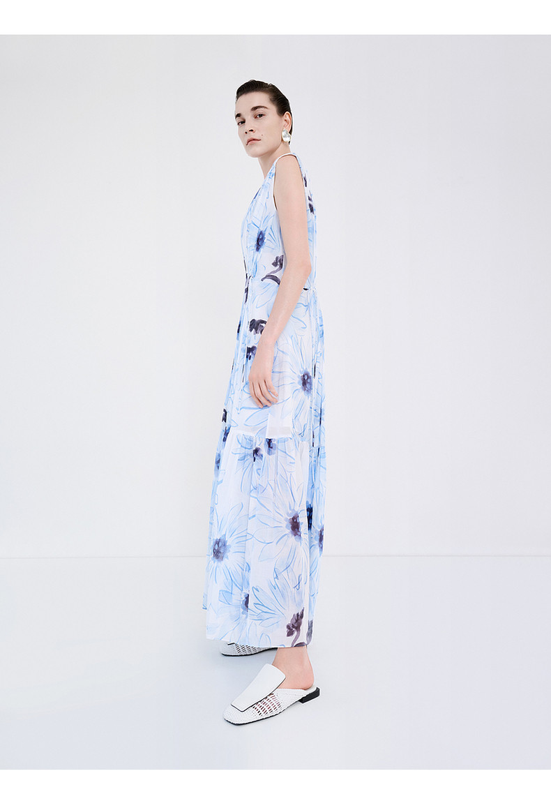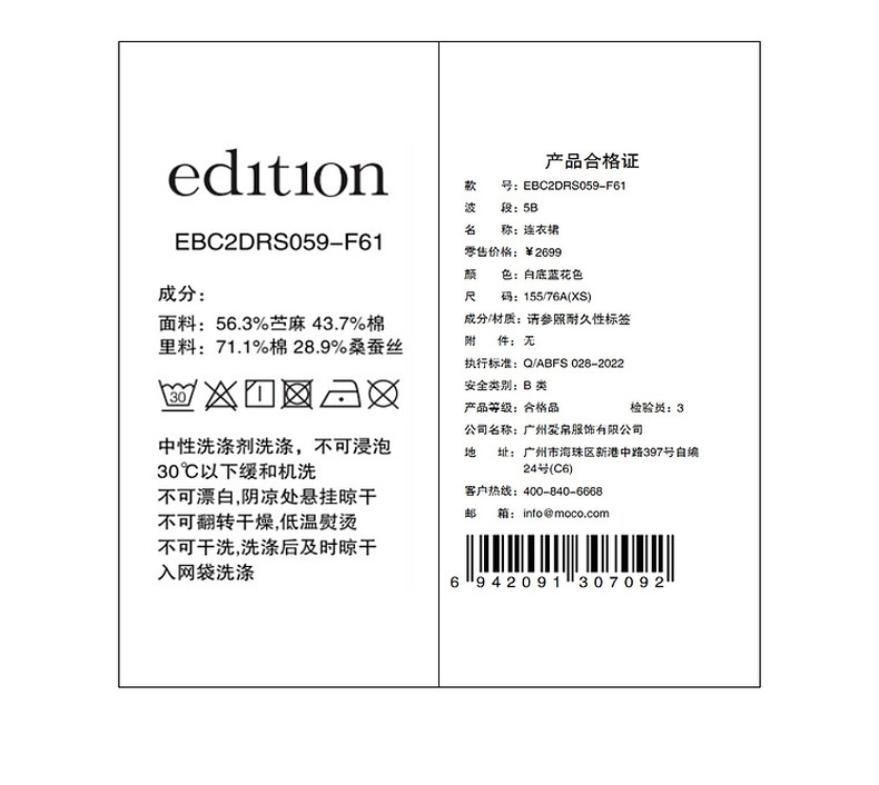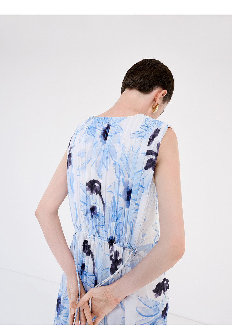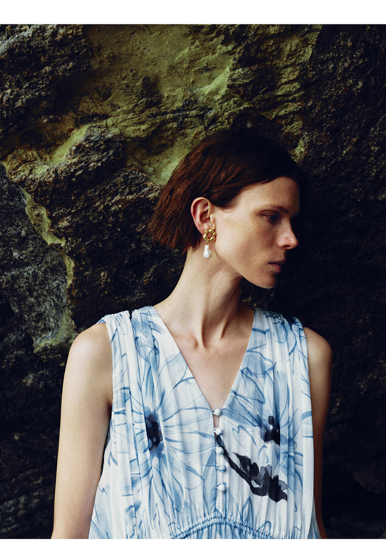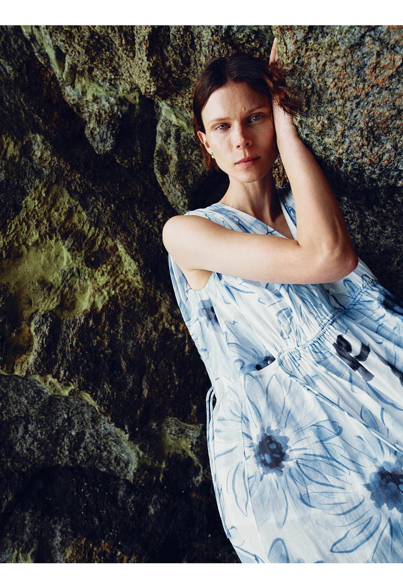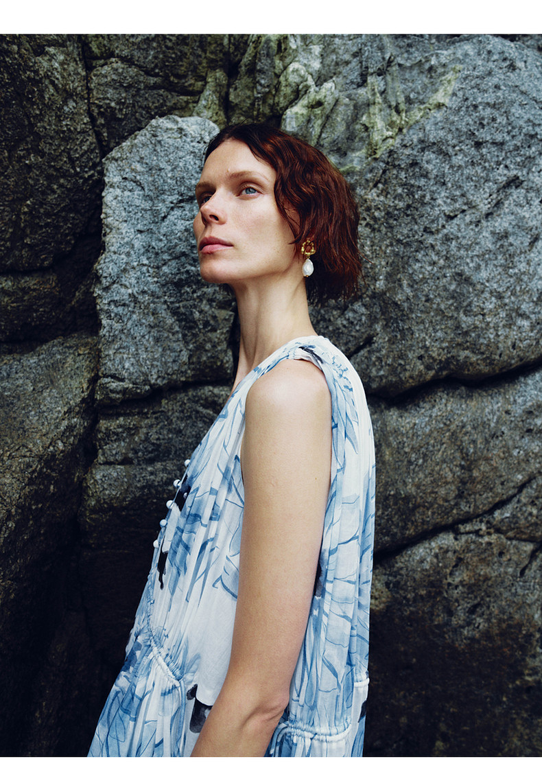Edition dress women's summer new resort style ink printed cotton and linen dress EBC2DRS059